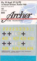 Das Set 35245 beinhaltet Abzeichen für die Panzer IV Ausf.F1 und F2, 14.Pz.Div. in Russland 1942.