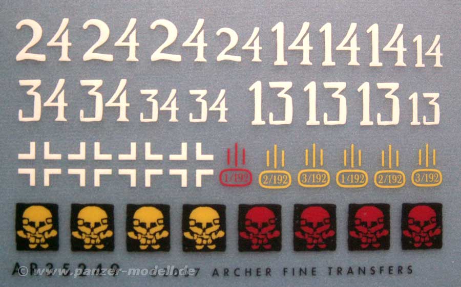Das Set 35249 beinhaltet Abzeichen für die StuG III Ausf.B, C, D und E der StuG-Abt.192.