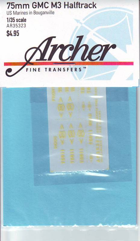 Aus dem Hause Archer gibt es für die amerikanische Halbkette M3 75mm mit der Nummer 35323 eine interessante Erweiterung; und zwar M3 75mm Halftrack - US Marines in Bouganville.