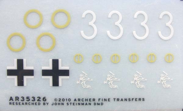 In dem Set sind Decals zur Markierung zumindest eines Panzer II der 11.Pz.Div. Dazu gehören natürlich Balkenkreuze, Kreise, 4x die Turmnummer '3' un Einheitenabzeichen der 11.Panzerdivision.