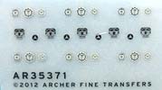 Insgesamt finden sich 6 komplette Sets an Rundinstrumenten und einem Typenschild für den Mercedes 170V von Masterbox.