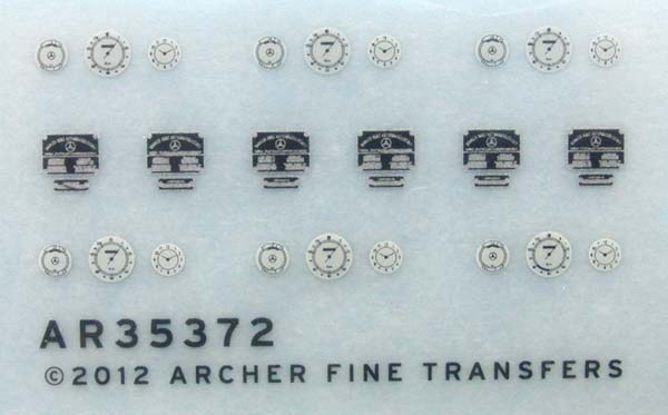Insgesamt finden sich 6 komplette Sets an Rundinstrumenten und einem Typenschild für den Mercedes 170V von Miniart.