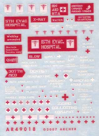 Im Maßstab 1/48 hat Archer das Set 49018 herausgebracht, das Misc. US Medic markings beinhaltet.