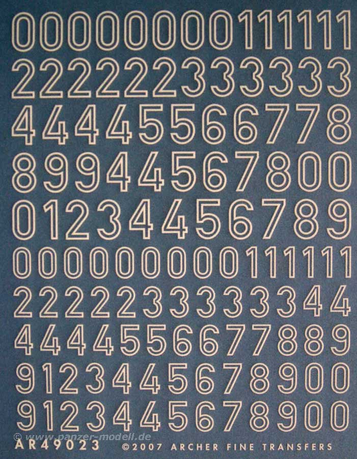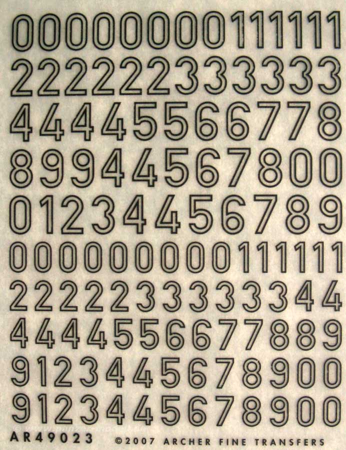 Verfügbar als Sets 49023B und 49023W mit schwarzen und weissen Buchstaben Enthalten sind jeweils zwei Sets an outline Buchstaben mit Zahlen von 0-9 mit etwa 70 Zahlen. Ein Set ist mit 7mm hohen, das andere aus 6mm hohen Zahlen versehen. Der Druck ist sauber und von bester Qualität. Die Zahlen '4' gibt es in zwei verschiedenen Versionen. Ein schönes Set zur individuellen Gestaltung, nicht unbedingt immer nur als Turmnummern, sondern auch für andere Einsatzmöglichkeiten. |