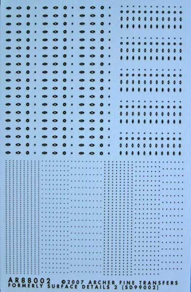 In der Reihe "Surface Details" von Archer gibt es echte 3D Decals, die deutliche Oberflächenerhöhung haben. Das Set 88002 beinhaltet US und britische Dzus Verschlüsse, Schraubenköpfe und Nieten.
