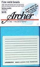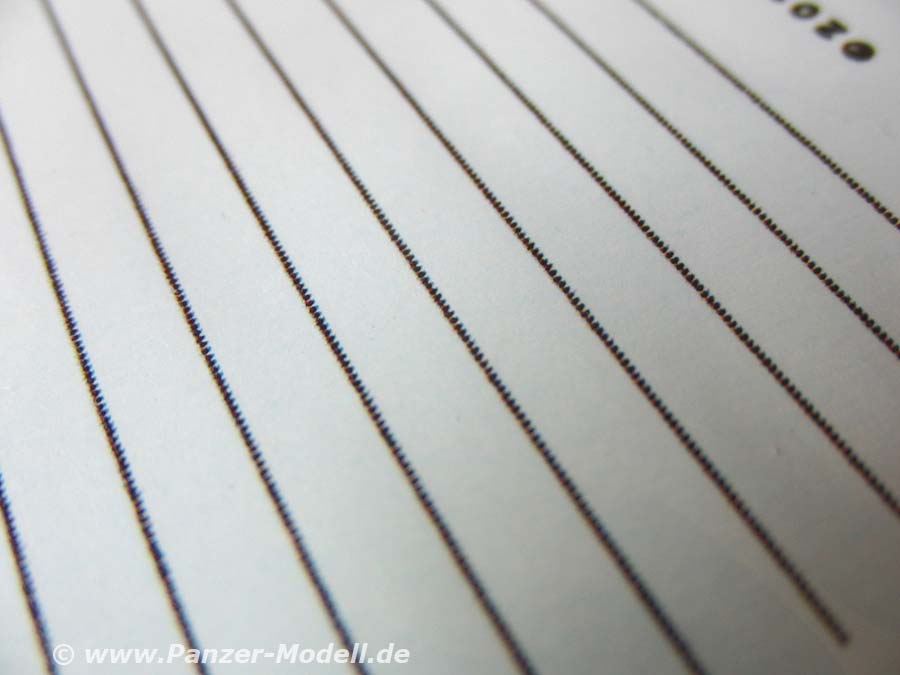 Es handelt sich hierbei um Schweißnähte, die als Resinauftrag auf Decalfolie aufgebracht wurde. Der Clou ist, dass die Nähte wirklich erhaben mit Struktur sind und ganz simpel durch Ausschneiden und in Wasser einlegen wie ein normales Decal auf das Modell gebracht werden kann. Einfacher geht es nicht. Kostenpunkt: 8,95 US Dollar. |