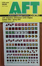 Die Embleme sind die der 3rd (Ironsides) Infantry Division, 6th Airborne Division, 15th (Scottish) Infantry Division, 43rd (Wessex) Infantry Division, 46th (North Midland) Infantry Division, 49th (West Riding) Infantry Division, 50th (Northumbrian) Infantry Division, 51st (Highland) Infantry Division, 53rd (Welsh) Infantry Division, 59th (Staffordshire) Infantry Division und 78th (Battleaxe) Infantry Division.