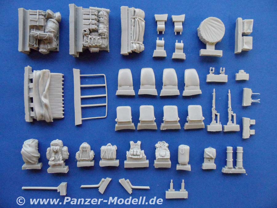 Black Dog hat sich ja ein wenig dem Thema Afghanistan verschrieben (worum wir sicher nicht böse sind!). Der Ein oder Andere wird sich jetzt sicher denken: „So vollgepackt!? Das ist doch Blödsinn!“ - dann, lieber Bastelfreund, google doch mal! Da haben wir ein Bild gefunden, das exakt diesen Wolf von der rechten Seite zeigt. Und der ist noch vollgepackter! Weiter im Text: Der Resinguss der Teile ist wie gewohnt perfekt! Selbst kleinste Details sind messerscharf gegossen. Einzig das MG3 wirkt etwas klobig. Aber das dürfte nur den Nietenzähler stören. Und Ersatz gibt’s ja von Perfect Scale, wer will! Fazit: Das dürfte der coolste Wolf ever werden! Ich freu mich schon auf den Bau! Hier passt einfach Alles!