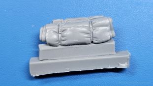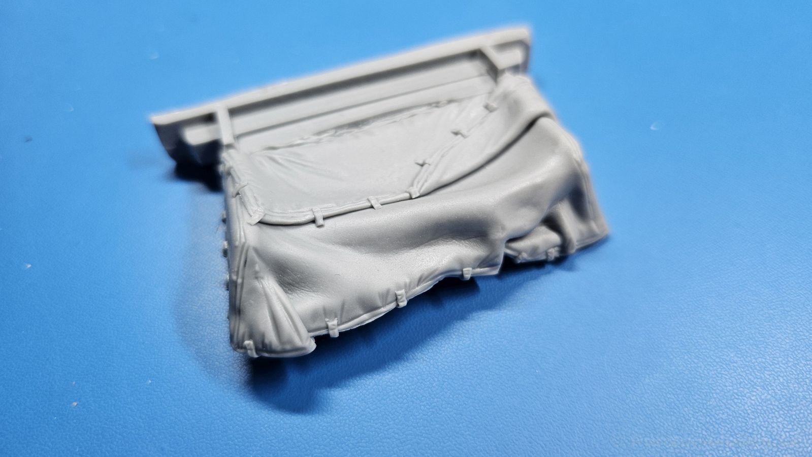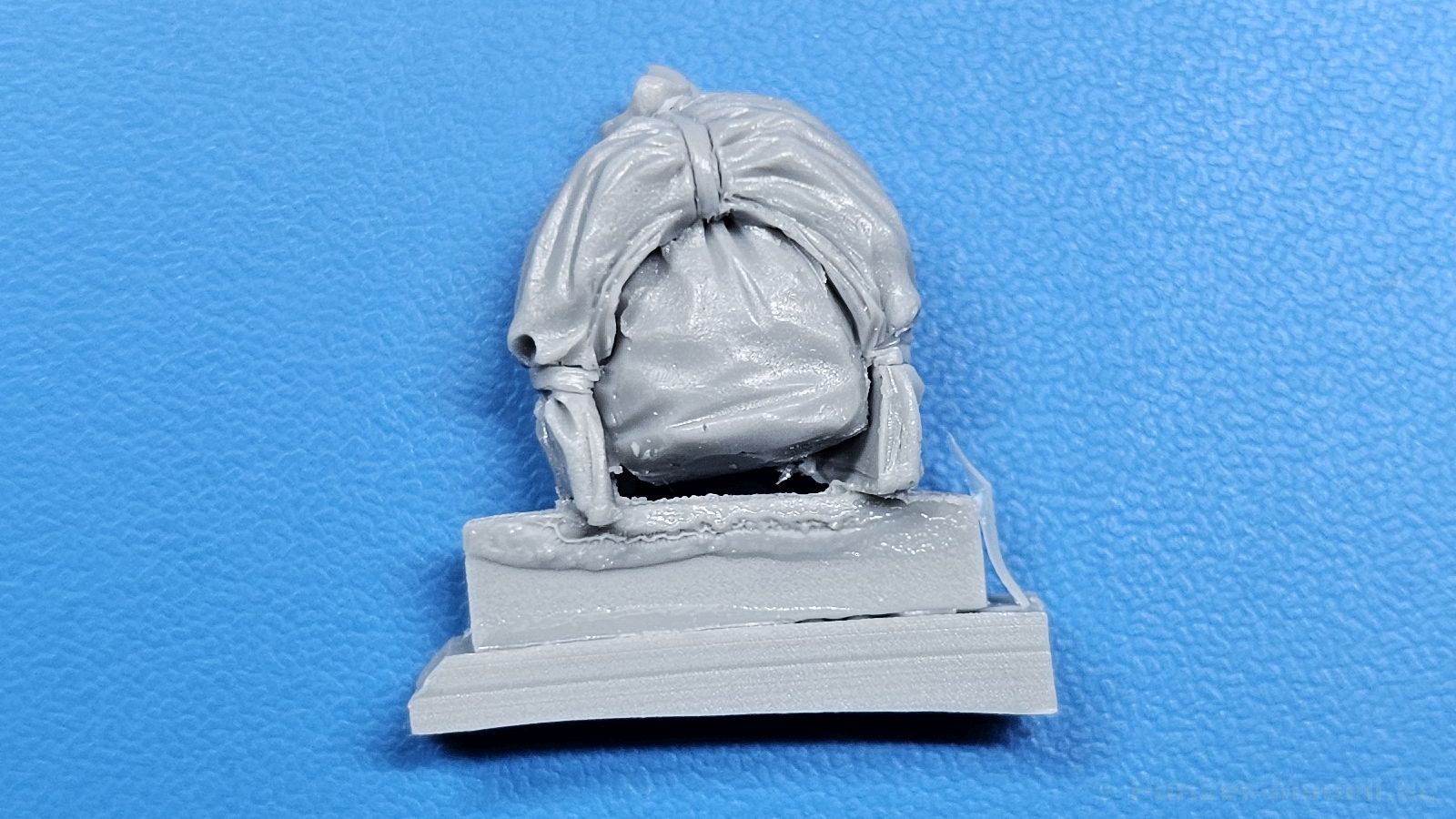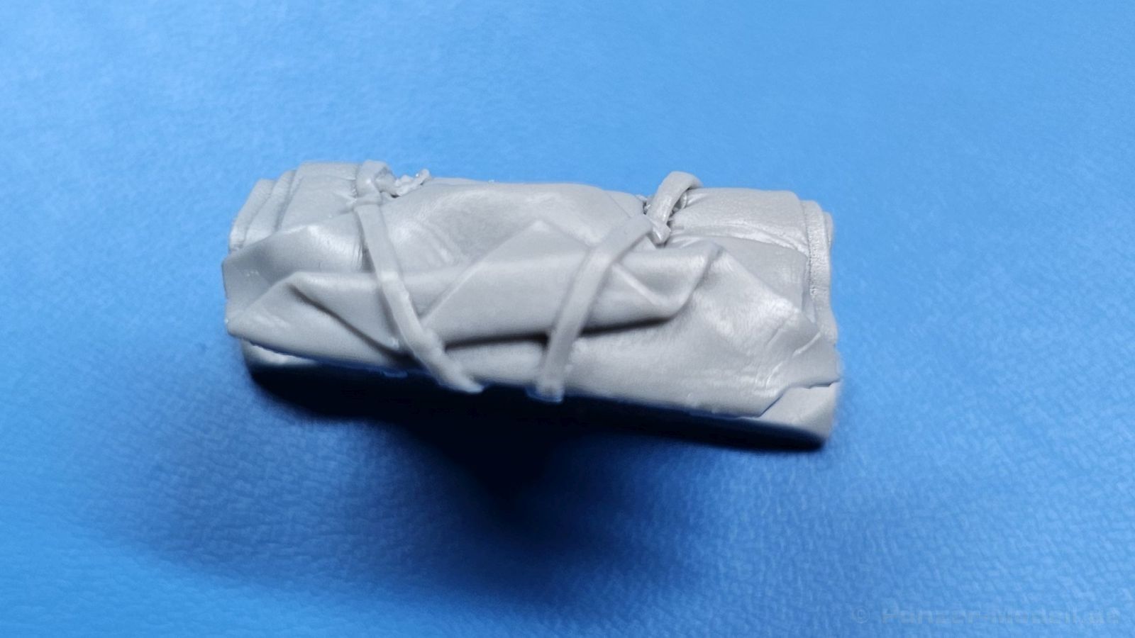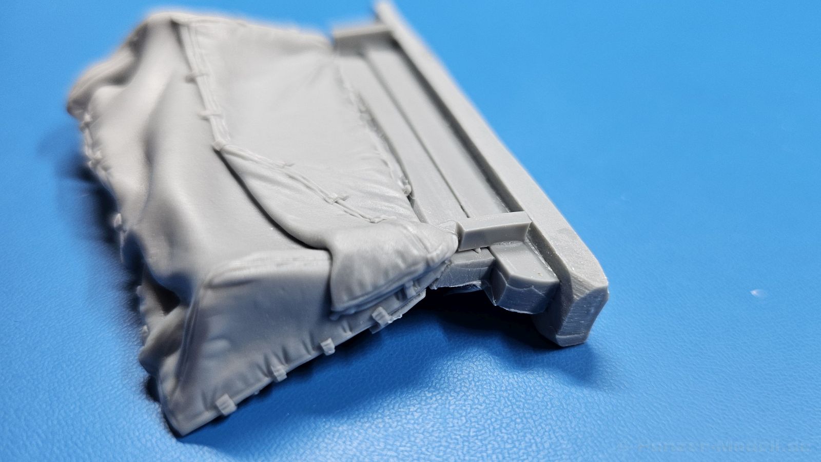 SU-76 accessories set 2023 brachte Zvezda ein neues Modell des sowjetischen Jagdpanzers SU-76 heraus. Passend dafür gibt es jetzt von der tschechischen Firma Black Dog ein Ausstattungs-Set. In einem 155 x 120 x 40 mm großen Karton befindet sich, geschützt durch Schaumstoffflocken, eine wiederverschließbare Klarsichttüte mit 12 Resinteilen. Der Resinguss ist in meinen Augen sehr gelungen mit feinen Details und Strukturen. Leider war eine Luftblase an der einzelnen Laufrolle zu finden, die sich aber leicht mit ein wenig Spachtelmasse verschließen lässt. Die Angüsse sind teils sehr kräftig, so dass man eine Resinsäge einsetzen sollte. (Auf entsprechenden Atemschutz beim Sägen achten, da Resinstaub gesundheitsschädlich sein kann.) Im Set enthalten sind eine Staukiste, eine Laufrolle, Rucksack, zusammengerollte oder gefaltete und verschnürte Planen, Kletterbalken und eine Wetterschutzplane für den Kampfraum. Das Deckelbild zeigt, wo die Teile angebracht werden sollen. Mehr Ansichten der Anbringung findet Ihr auf der Produktseite des Herstellers hier! Verschnürungen und Faltenwurf und die Holzstruktur des Kletterbalkens sind schön wiedergegeben. Die Kampfraumplane ist halb zurückgeschlagen geformt, mit Halteschlaufen und etwas Durchhang. Auch wenn der Hersteller das Set für den Zvezda Bausatz vorsieht, sollten fast alle Teile auch zu den Tamiya und MiniArt Bausätzen passen. Sofern sich keine großen Maßunterschiede zwischen den Bausätzen ergeben, dürfte auch die Kampfraumplane, ggfs. mit ein wenig Anpassung, bei anderen Bausätzen zur Anwendung kommen. Da Resin in letzter Zeit im Preis ordentlich angezogen hat, schlägt dieses Set in Deutschland mit ca. 26,- Euro zu Buche und liegt somit über dem Preis für das empfohlene Modell und wird etwas abschreckend sein. Aufgewertet wird die SU-76 aber allemal und gibt ihr ein einsatzmäßiges Aussehen!