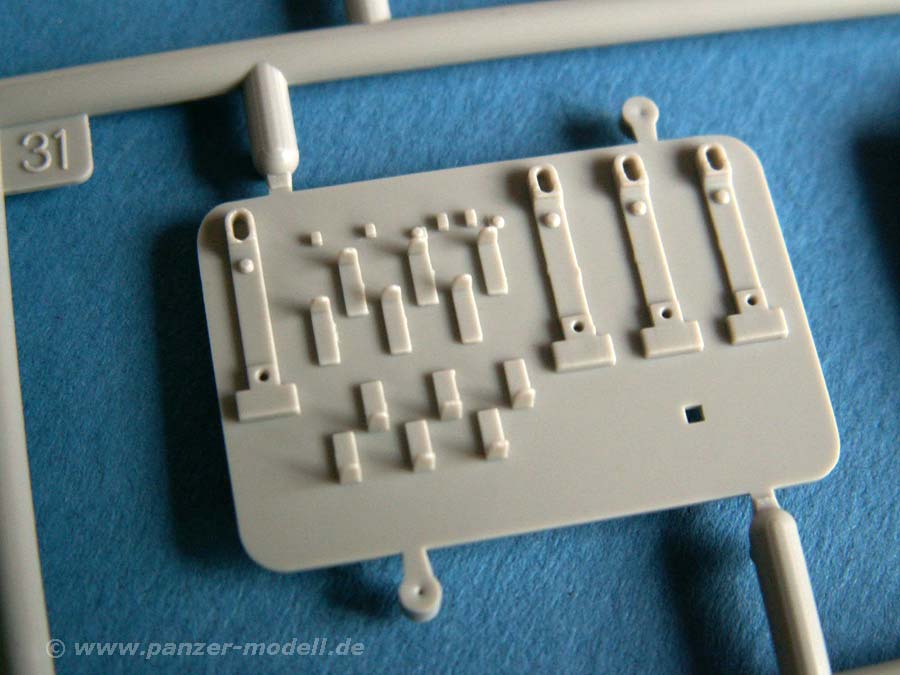 Die Machart der Teile ist wirklich gut geraten, aber das ist man ja mittlerweile von Bronco gewohnt. Die Details sind sehr fein und sauber dargestellt, dass es eine Freude ist. Auch Auswerferstellen sucht man nahezu vergebens.