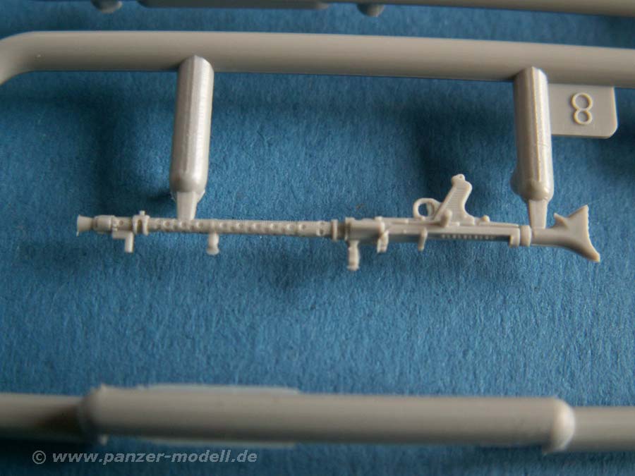 Als Bewaffnung ist ein schönes MG34 in Plastik vorhanden UND als Zusatz eine 7,92mm Panzerbüchse, wie man sie auf einigen Fotos in Sd.Kfz.221 sieht. Wie gesagt - dafür dass es Plastikteile sind, sehen diese echt gut aus.