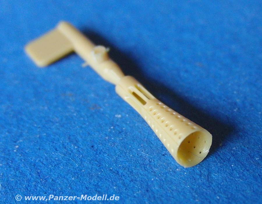 Der Knüller ist das Rohr - es ist komplett aus Plastik mit der Mündungsbremse - diese ist aber so gut und fein detailliert mit Lüftungslöchern und Schlitzen, dass ein Metallrohr zwar noch besser ist, aber nicht zwingend erforderlich ist!