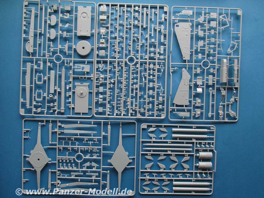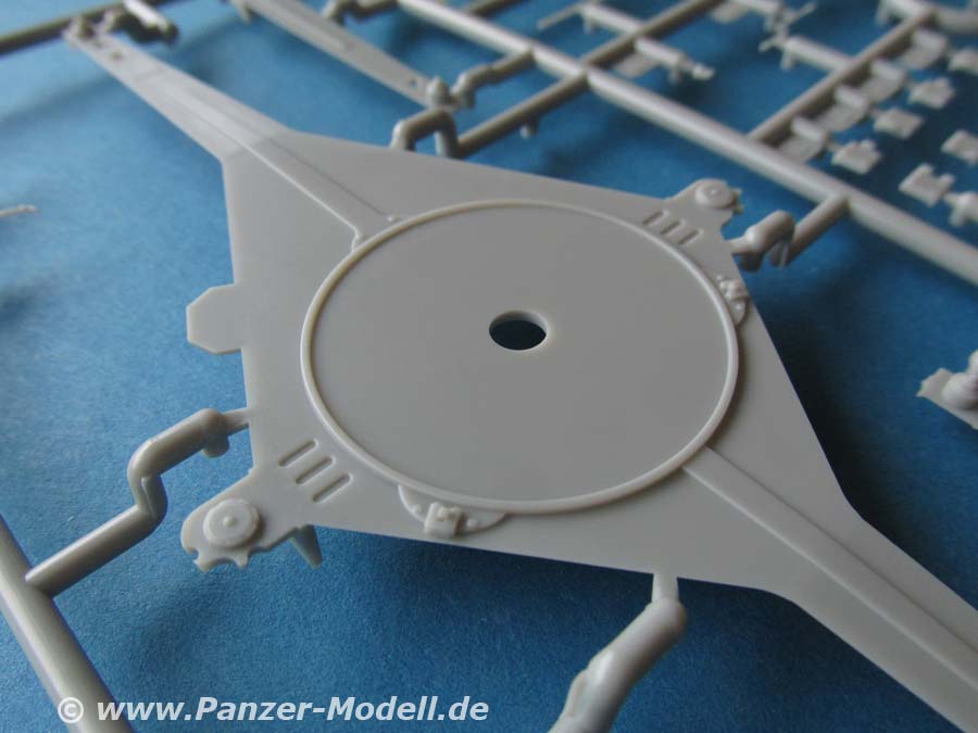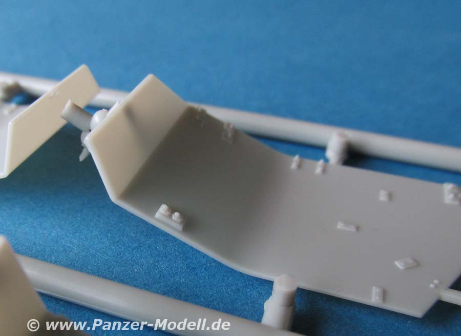 Der Großteil des Bausatzes ist prinzipiell bereits aus dem Bausatz 35067 bekannt, denn die Lafette inklusive der Schutzschilde ist von dort. Die Qualität ist ausgezeichnet mit vielen feinen Details und sauberem Guss. Die Schutzschilde sind ebenfalls sehr gut und maßstäblich erstaunlich dünn. Insgesamt gibt es hier schon sehr viele, teils winzige Anbauteile - schön für die Optik, schlecht für die Motivation. Auch sämtliche Anbauteile wie Höhenrichtung, Anzeigen, usw. sind in wahnsinnig viele Kleinteile aufgebrochen - da wird einem schon beim Blick in die Bauanleitung schwindelig. Andereseits - detaillierter geht es dann kaum noch.