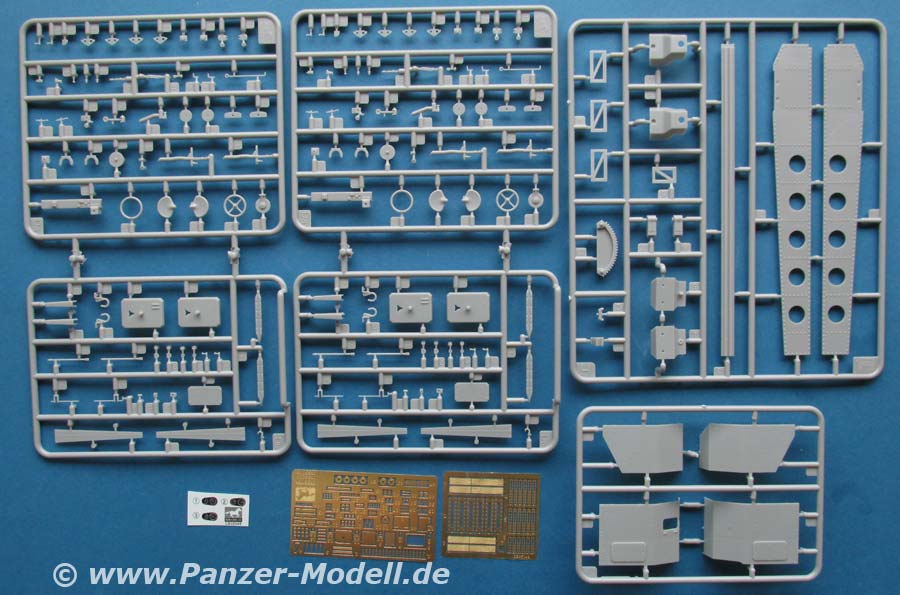 Und da ist bei den winzigen Plastikteilen nicht Schluss - Bronco hat heir auch noch 2 Platinen mit vielen teils noch kleineren, feinen PE Teilen beigelegt, die diden Detaillevel noch weiter nach oben treibt