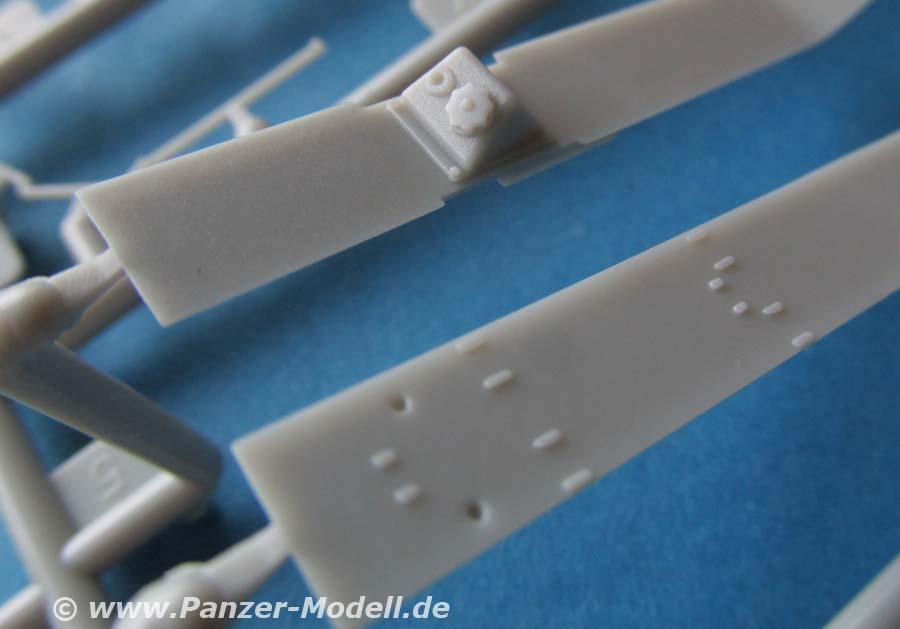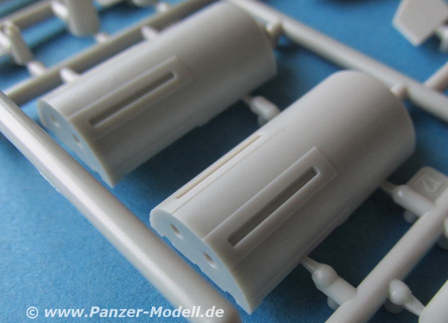 Beim Bau muss man sich bei einigen Anbauteilen entscheiden ob man das Modell in Feuer- oder Transportstellung baut.