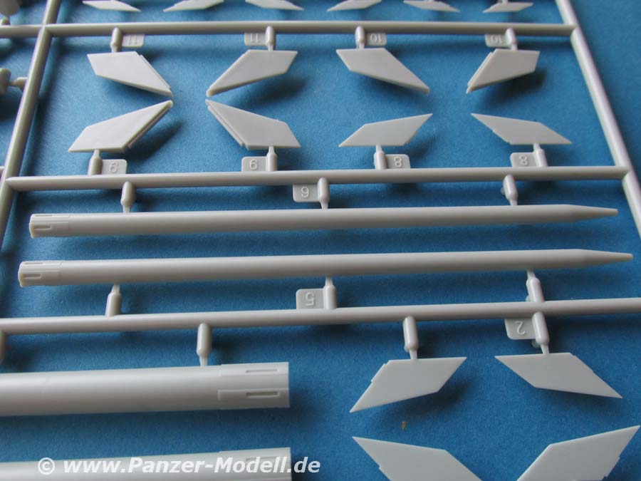 Im Karton finden wir 9 hellgraue Spritzlinge, 2 PE Platinen und einen winzigen Decalbogen.