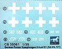 Der kleine Decalbogen und die Bauanleitung bieten markierungsvarianten für 4 verschiedene Fahrzeuge - allesamt in grauer Bemalung: