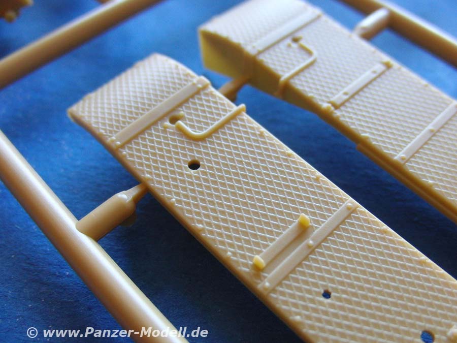 Die Ketten sind Einzelgliedketten die allerdings noch am Spritzling sind und abgetrennt und versäubert werden müssen - jedes Glied ist an vier Punkten am Spritzling befestigt, was für einige Arbeit spricht. Dafür ist die Machart und Detailiierung der einzelnen Glieder hervorragend und auch hier die absolut korrekte Version für Ausf.D1