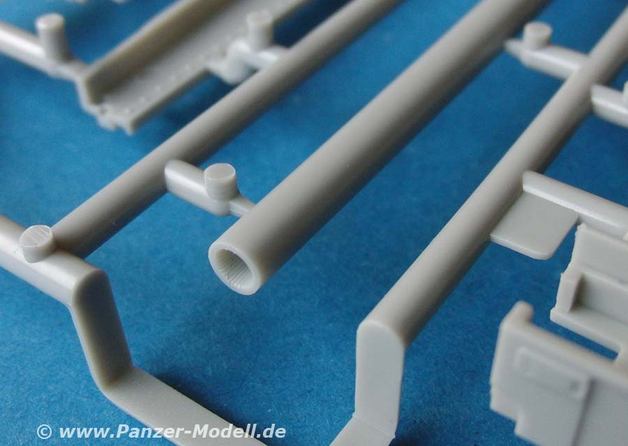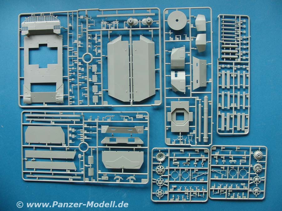 Der Bausatz beinhaltet 34 große und teilweise kleine Spritzlinge, die Unterwanne, Einzelkettenglieder, Klarsichtteile, 2 PE Platinen und ein Decalbogen.