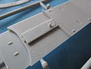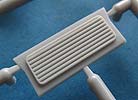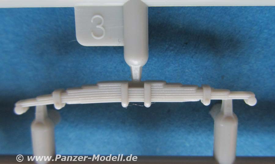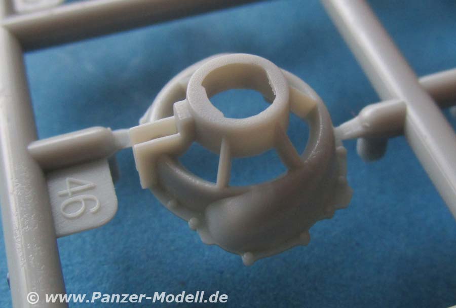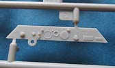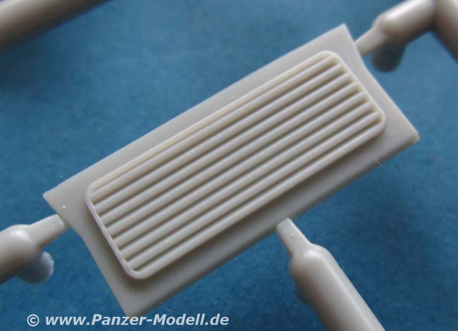 Auch die gesamten Sichtklappen assen sich wahlweise offen oder geschlossen anbauen. Die Kotflügel links und rechts sind zusammen mit dem Trittblech als je ein Teil ausgeführt, was den Anbau sehr erleichtert. Für die Scheinwerfer stehen die normale Version mit Glaseinsatz und die mit Tarnaufsatz wahlweise zur Verfügung.