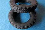 Die Räder setzen sich aus mehrteiligen Felgen aus Plastik und den Reifen aus (vermutlich) Vinyl zusammen - dabei haben diese eine ungewöhnliche matte Oberfläche, die dem Original sehr nahe kommt. Das Profil der Reifen ist schön dargestellt und es fehlt auch nicht an den Herstelleraufdrucken auf den Reifenflanken.