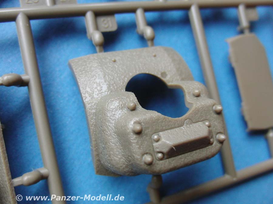 Der Guss der Teile ist wieder sehr sauber und fein gelungen. Die Oberwanne ist mit markanter Gussstruktur dargestellt. Auch wunderschön dargestellt sind die Schnittkanten der Panzerplatten, Schweißnähte und Nietenköpfe.