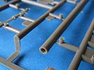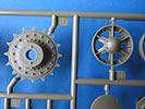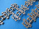 Dazu kommen die fein detaillierten Ketten, die als bewegliche Einzelgliedketten ím Karton beiliegen. Die einzelnen Kettenglieder, die abwechselnd mit einem Glied mit und einem ohne Führungszahn gebaut werden. Die Detaillierung ist sehr gut absolut keinerlei Auswerferstellen. Diese Glieder werden mittels zweier Steckbolzen, die wirklich sehr fein sind, gehalten und bleiben beweglich, was zusammen mit dem beweglcihen Laufwerk sehr sinnig ist.