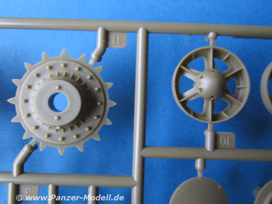 Im vorliegenden Bausatz finden wir 25 Spritzlinge, ein Spritzling klares Plastik, eine Unterwanne, zwei beutel Kettenglieder, eine PE Platine, Kupferlitze und ein großer Decalbogen.