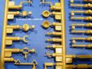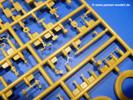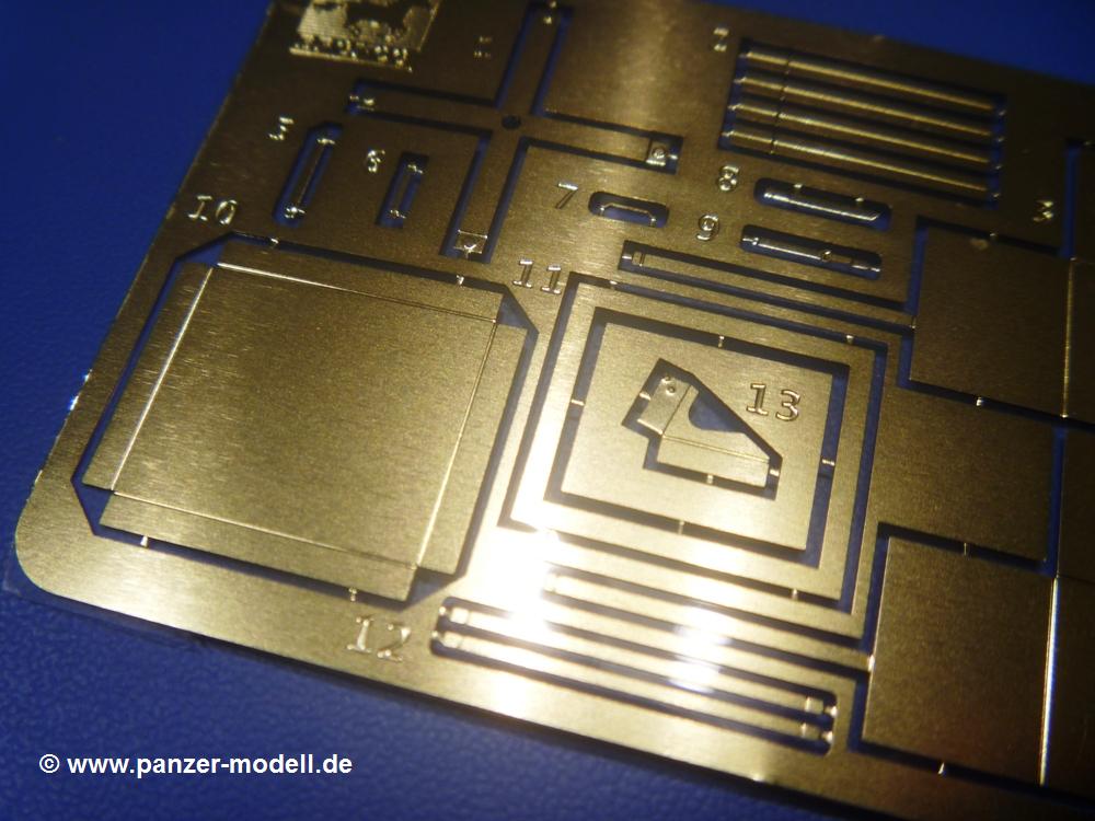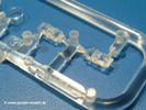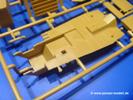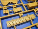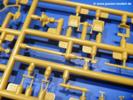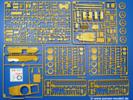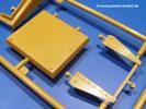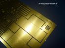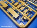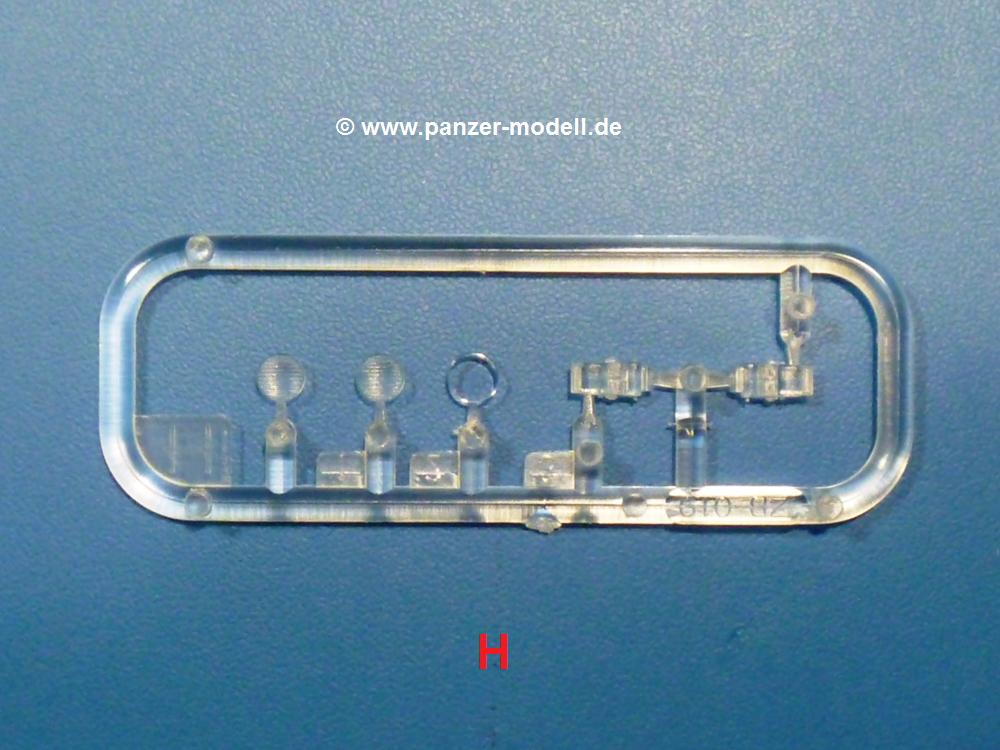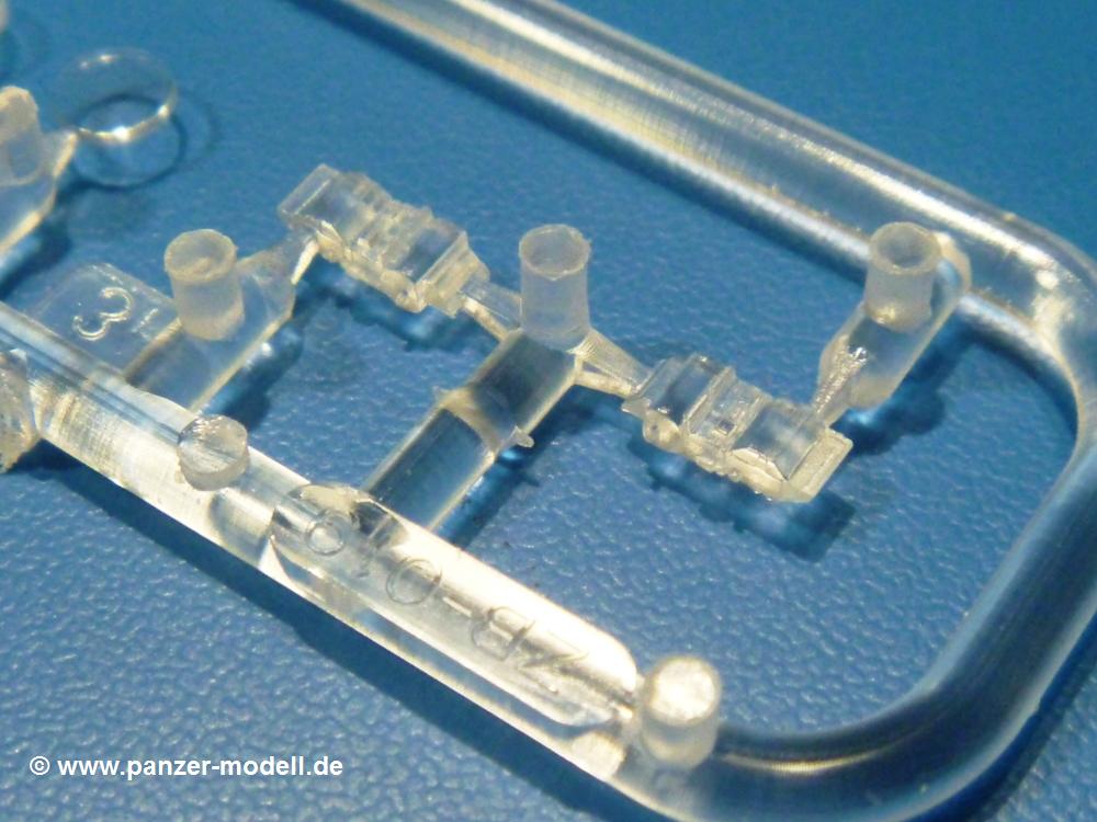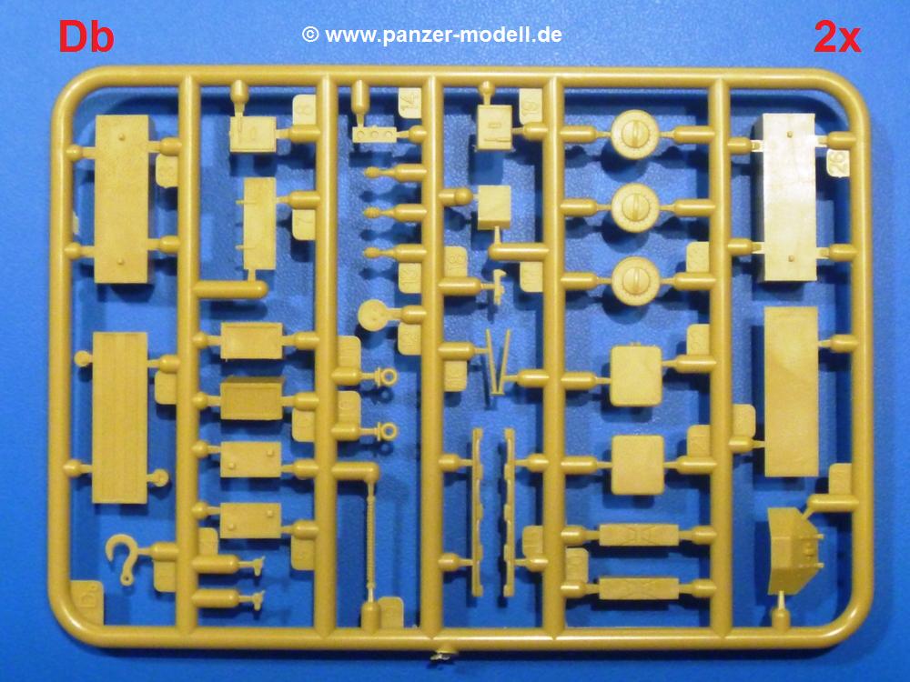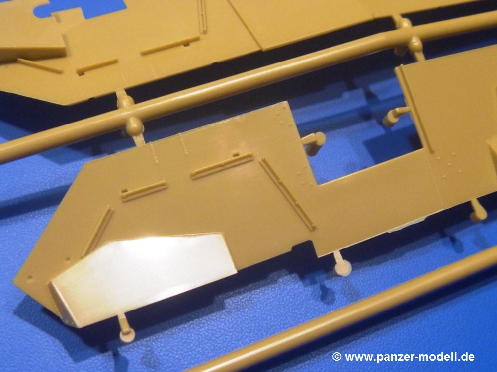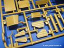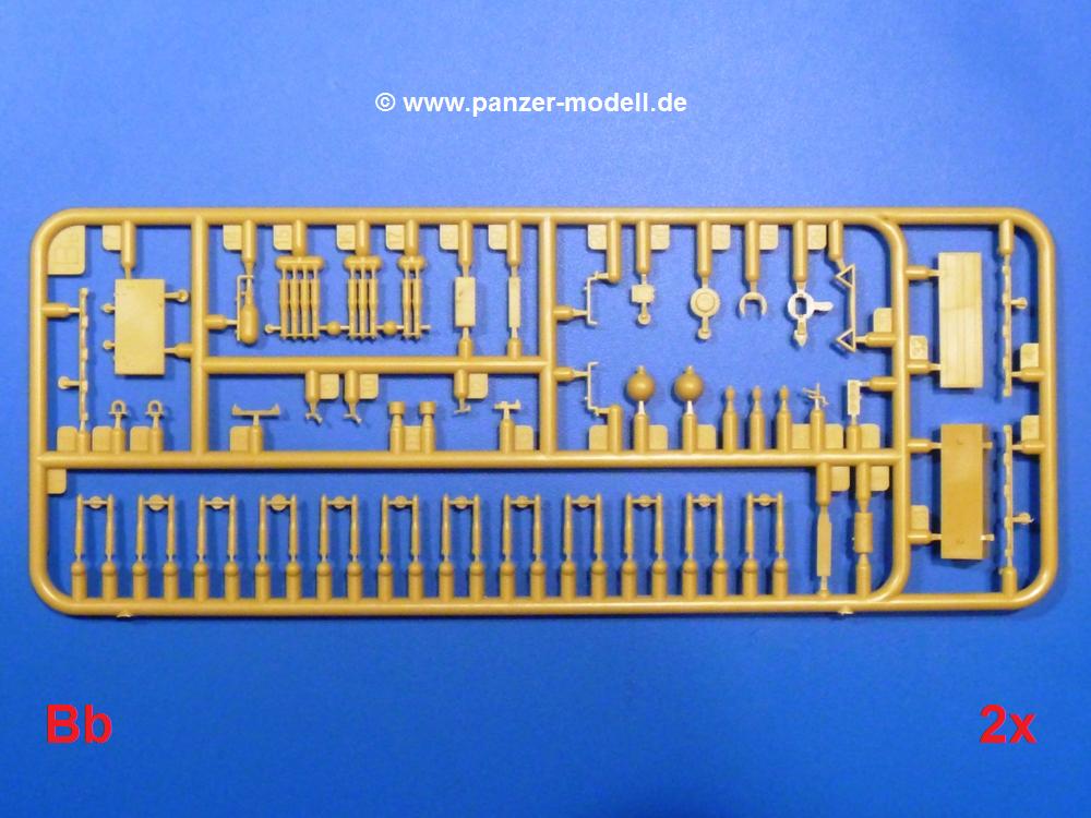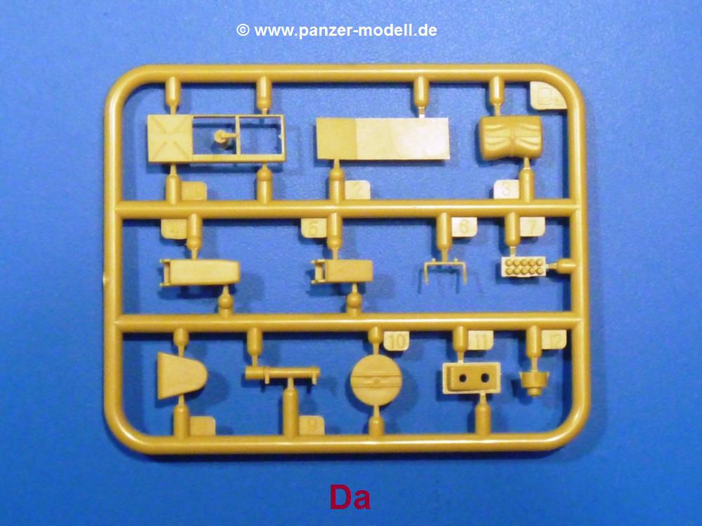 So, wie beschreibt man nun einen Bausatz der Superlative, ohne zu viel oder zu wenig zusagen? Beginnen wir beim Motor. Motorblock und Ölwanne sind selbstverständlich. Der Zylinderkopf ist mit feinen Verschraubungen versehen, Zündkerzenstecker sind angedeutet. Zuluft- und Auspuffkrümmer, Öleinfüllstutzen, Zündspule, Lichtmaschine (Generator), Doppelkeilriemen, -scheiben, Kühlventilator - alles da als separat anzubringende Teile. Allein die Lichtmaschine wird aus 6 Teilen zusammengesetzt und dazu gibt es auch den Keilriemenspanner. Der 6-teilige Kühler glänzt mit feinen Kühlrippen. Bronco hat die Schlauchverbindungen zum Motor nicht vergessen. Vergaser und Luftfilter bilden eine Einheit. Der Luftansaugschlauch führt zum Kampfraum, von wo der Motor sich seine Luft holt. An den Auspuffkrümmer schließt sich das Abgasrohr an, das in einem Schalldämpfer endet. Eigentlich fehlt nur die Verkabelung! An den Motor wird das Kupplungsgehäuse mit dem nachfolgenden Schaltgetriebe angeflanscht, das die Kraft über zwischengeschaltete Fliehkraftkupplungen an das Verteilergetriebe abgibt. Die Gimmicks hierbei sind, dass z.B. vom Allradschalthebel bis zum Verteilergetriebe das komplette Gestänge vorhanden ist. Man kann also am Modell die Verbindungen verfolgen. Vom Verteilergetriebe führen Kardanwellen zu den Achsen, deren Differentialgehäuse auch mit feinen Verschraubungen und Stützrippen ausgestattet sind. An der Hinterachse finden wir ein Bremsgestänge und einen extra Kontroll-/Einfüllstutzen für das Getriebeöl. Die Achsen ruhen auf Blattfederpaketen, die in ihre Lager ohne Klebstoff nur eingeschnappt werden, um die Beweglichkeit zu erhalten. Je Blattfederpaket gibt es noch einen Stoßdämpfer. Während die hinteren Stoßdämpfer sich an Lagern in Motorraum abstützen, bekommen die vorderen separate, außen an der Karosserie anliegende. Die großen Räder sind mehrteilig ausgeführt. Jedes Vorderrad besteht aus 9, jedes Hinterrad aus 6 Teilen! Zum einen dient dies der besseren Detaillierung, zum anderen um die Dreh- und Lenkbarkeit zu erreichen. Das komplette Lenkgestänge ist vorhanden und kann gemäß Anleitung funktionsfähig gebaut werden. Das "Rückgrat" des Fahrzeugs ist der Rahmen, der sich aus Längs-, Stütz- und Querträgern zusammensetzt. Für das Verteilergetriebe gibt noch mal einen mehrteiligen Hilfsrahmen, der in den eigentlichen Rahmen eingepasst wird. Auf dem Rahmen sitzt dann der Fahrzeugboden. Der Kampfraum wird vom Motor durch ein Brandschott getrennt. In dem Schott befindet sich eine Klappe, die geschlossen oder offen gebaut werden kann. Der Trick an der Klappe ist, dass die Besatzung durch sie hindurch greifen konnte, um den Ver-/Entriegelungsmechanismus der großen Motorklappe zu bedienen. Natürlich ist dieser Mechanismus vorhanden und kann aus 8 Teilen in geöffneter oder geschlossener Version gebaut werden. Lässt man die Motorklappe offen, wird man auch später noch sehen können, dass sich neben 2 Tanks auch noch Batteriekasten, Ölnachfüll- und andere Behälter im Motorraum befinden. Auch im Fahrerraum kann man sich austoben, dabei ist der Sitz noch das größte Teil. Schalt-, Feststellbrems- und Allradschalthebel sind vorhanden. Dies gilt auch für mehrteilige Pedalerie. Lenkrad, -stange, -getriebe inkl. Verbindungen zum Lenkgestänge sind da. Die Armaturentafel zeigt Details wie Lichtschalter und Instrumente (Laut Bauschritt 7 liegen Decals für die Instrumente bei. Dem ist aber nicht so!) plus eine Kartenleuchte. Der restliche Innenraum ist mit Feuerlöscher, Munitionskasten, -halterungen, Feldflasche, Leuchtpistole und einigem mehr ausgestattet. Die Seitensichtklappen sind einteilig, aber sehr schön detailliert, die Fahrersichtklappe dafür 14-teilig. Sie kann offen oder geschlossen gebaut werden. Die beiden Seitentüren können geöffnet oder geschlossen gebaut werden. Die rechte kann aber nur bei Option 1 mit dem Ersatzrad auf dem Bug geöffnet werden. Auch der Turm geht als eigenes Modell durch. Natürlich sind Waffen komplett und mit Munitionskästen und Hülsenfangsäcken, -kasten ausgestattet. 3 Sitze der Turmbesatzung, Turmseitenschwenkwerk, Handgranatenhalter aus PE Teilen mit separaten Handgranaten, Abfeuerungsmechanismus der 2 Nebelwurfrohre in der Blende, Seitensichtluken mit Öffnerhebel, Aufbewahrungskästen, Trommelmagazinhalterungen, Turmbelüftung und ein sehr schönes Funkgerät mit Schutzgitter und Verkabelung sind weitere Innendetails. Die Dachwinkelspiegel sind aus Klarsichtmaterial, werden aus mehreren Teilen zusammengesetzt und können gedreht eingebaut werden. Für die faltbaren Turmluken gibt es die Optionen offen oder geschlossen. Für den Suchscheinwerfer an der Turmfront gibt es eine Klarsichtscheibe. Die MG-Rohre sind bereits aufgebohrt, die Blende kann höhenbeweglich gebaut werden, bleibt aber beweglich, nur wenn man im Inneren die Hülsenfangsäcke weglässt oder durch flexibles Material (nicht im Bausatz enthalten) ersetzt. Weitere Details außen am Turm sind die durchbohrten Nebelwurfrohre, die Abdeckung des Turmlüfters, MG-Halterung samt MG und die Antennen. Außen am Fahrzeug finden sich Werkzeuge wie Schaufel, Brechstange, Hackenstiel und Wagenheber, Feuerlöscher, Außenspiegel, Hupe, Begrenzungsleuchten, Fahrscheinwerfer, Hebe- und Zurrösen, eine Halterung für ein Sandblech und dasselbige, verschiedene Stau-, Munitions- und Kraftstoffbehälter und das Ersatzrad. Die Anbringung der letzteren hängt von der Optionswahl ab. Das Abschleppseil aus dem beiliegenden Bindfaden wird mittels 2 Haken in die seitlichen Haltegriffe eingehängt. Der Decalbogen liefert die Außenmarkierungen für vier Fahrzeuge. Es fehlen die Instrumentenanzeigen und die Plaketten für Kästen und Feuerlöscher, die in die Bauschritten zwar angegeben sind, aber nicht auf dem Bogen erscheinen. Varianten: