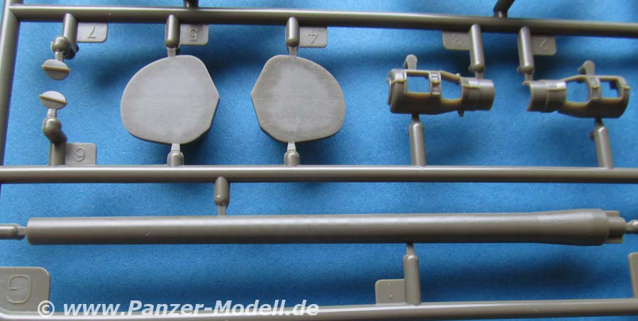 Interessanterweise bietet Bronco kleine Spritzgusszahlen am Rahmen, die man abtrennen und als Gussnummern am Modell nutzen kann - es wird nur nicht angegeben wo diese zum Einsatz kommen sollten.