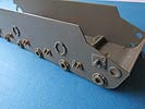 Die Kettenbleche liegen einzeln bei und werden mit den Halterippen extra versehen und im hinteren bereich nach dem Anbau an die Wanne mit 4 Zusatzkraftstofftanks, die jeweils aus 5 teilen zusammensetzen.
