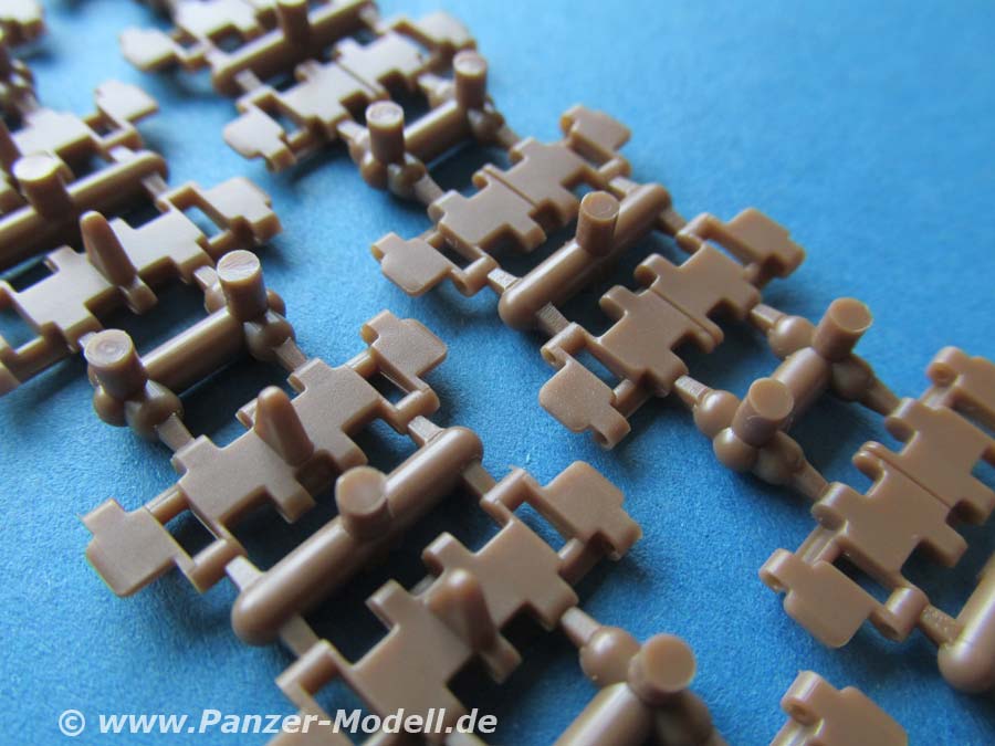 Die Kettengleider sind sauber ohen Auswerferstellen gespritz mit schönen Details und Andeutung von Gussstruktur in den Vertiefungen der Aussenseite.