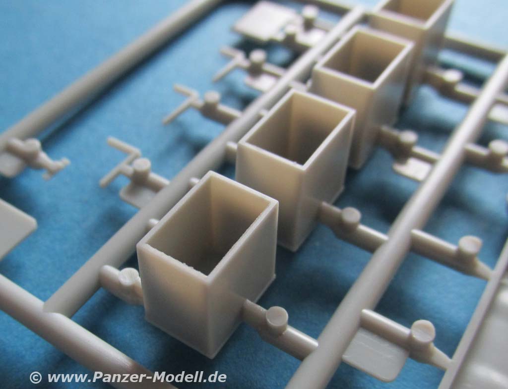 Auch die 3,7cm Pak ist ziemlich detailliert und setzt sich aus relativ vielen einzelnen Kleinteilen zusammen. Das Rohr der Pak ist dabei einteilig mit offener Mündung. Für die Pak liegen auc einige Munitionskisten bei.