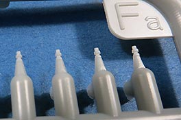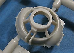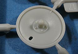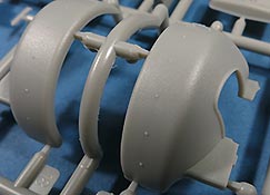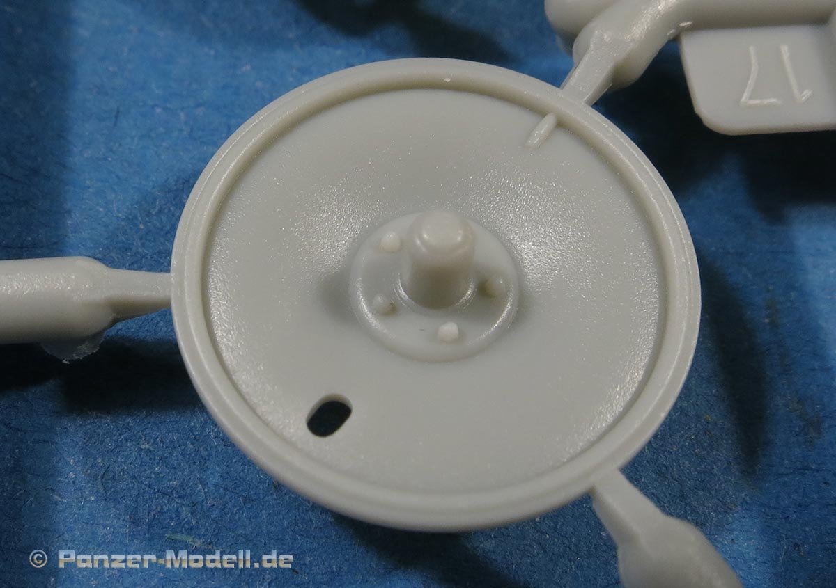 Die Plastikfelgen werden von beiden Seiten in die Reifenteile eingefügt und verklebt. Auch diese machen einen ausgezeichneten Eindruck mit feinen Details.
