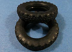 Die Räder sind aus schwarzem Vinyl, die einen recht guten Eindruck machen - feines und sauberes Reifenprofil ohne Trennnähte und auch fein detaillierte Herstelleraufdrucke an den Reifenflanken.