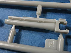 Die Holme lassen sich entweder in Feuer- oder Transportstellung bauen. Die Räder werden aus Vinylreifen und Plastikfelgen zusammengesetzt. Auch diese machen einen ganz guten Eindruck mit Herstelleraufdruck und feinem Profil.