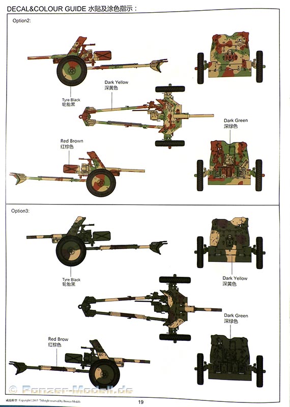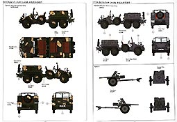 Auf den letzten drei Seiten finden sich farbig gedruckte Farbprofile für die Krupp Protze und die PaK. Es finden sich je 3 Optionen für den Krupp und die PaK: