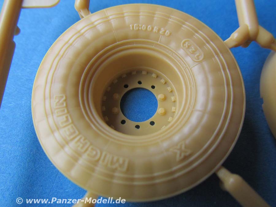 Schön gelungen sind die Reifen, die sich aus mehreren Teilen zusammensetzen und so einen unglaublich guten Detailgrad für Spritzgussreifen aufweisen - gerade die Details auf den Reifenflanken sind ein Hinkucker.