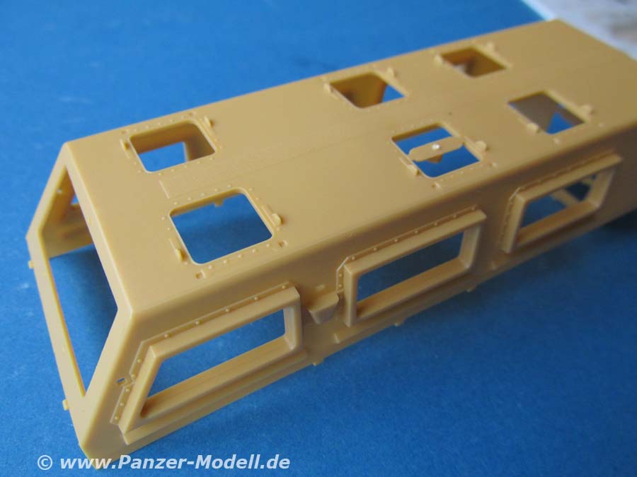 Die Panzerungselemente im Bereich der unteren Kabine ist mit massiver Spaced Armor ausgestattet. Diese Elemente sind in einem Spritzgussteil zusammengefasst und sind mit relativ glatter Oberfläche versehen.