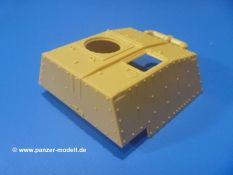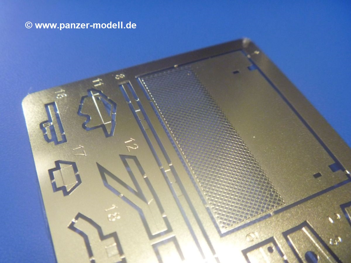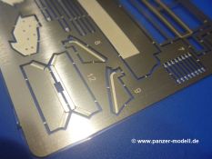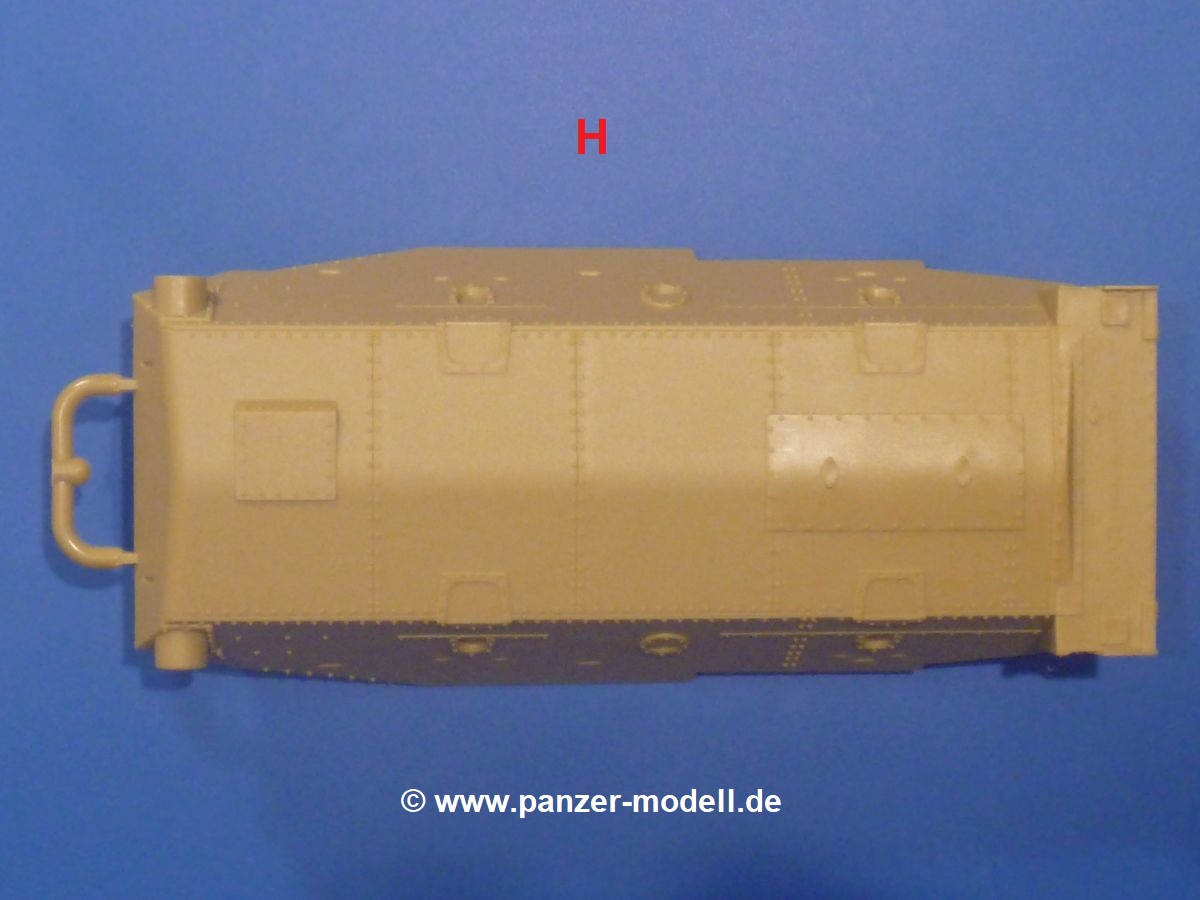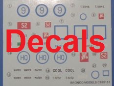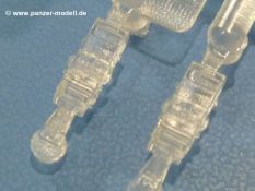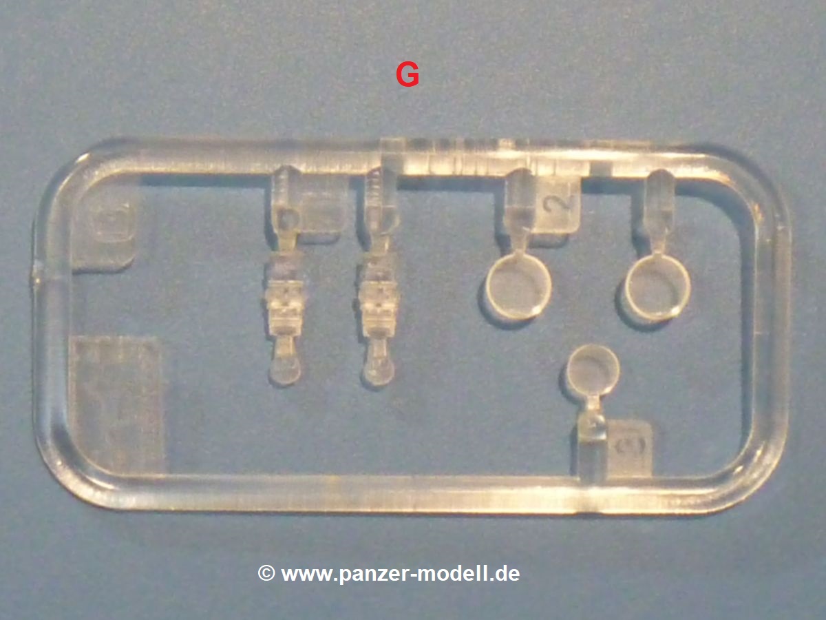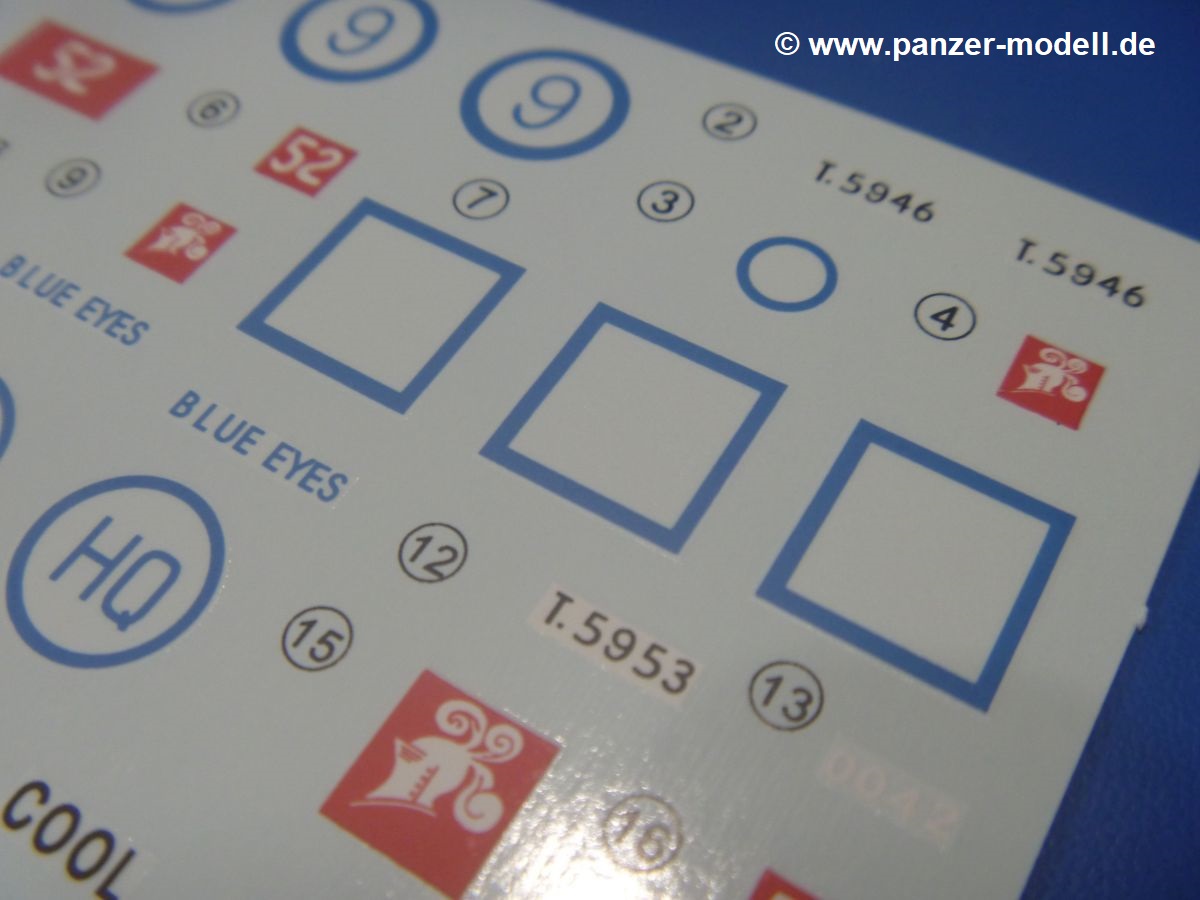 Wie nicht mehr anders zu erwarten, sind alle Teile sauber gespritzt, ohne Sinkstellen, Fischhäute oder Grat.Bei diesem Bausatz hat Bronco seiner Teileorgie abgeschworen. Es gibt weder Wannen-, noch Turminneneinrichtung, welches die Teilezahl übersichtlich macht.Die Wanne besteht aus einem Teil, aber dennoch mit vielen Details wie Wartungsdeckeln, Nieten und Lagerverschraubungen. Das Fahrgestell entspricht dem des Valentine - je Seite 2 große Lagerböcke, die die Rollenwagen mit je einem großen und 2 kleinen Laufrollen und ein Stützrad aufnehmen. Mittig zwischen den Lagerböcken findet man das 3. Stützrad. Lauf- und Stützrollen sind fein detailliert. Die typischen Federbeine bestehen diesmal aus je einem Teil. Hier kann man an den Gussnähten ein wenig versäubern, wenn man sein Modell in Nahaufnahmen präsentieren will. Die Abstützung der Lagerböcke besteht aus feinen PE Blechen. Der Getriebekasten, der die Antriebsräder aufnimmt, ist reichlich mit Scharnieren und Nieten versehen. Die Kette besteht aus verschieden langen Segmenten und Einzelgliedern für die Rundungen an Leit- und Antriebsrädern.Das Oberteil besteht aus einem Guss. Hier braucht man nur die Fahrerfront anbauen, die noch eine separate Fahrersichtklappe aufweist, die man ggfs. auch offenlassen kann. Beim Beifahrer hat man die Wahl zwischen einer Panzerplatte für die frühe Version oder einem Besa-Bug-MG. Fahrer- und Beifahrerluken können auch offen oder geschlossen gebaut werden. Für den Fahrer gibt es noch einen Winkelspiegel aus Klarsichtmaterial. Die großen Lufteinlässe links und rechts vom Motorraum werden zwecks besserer Detaillierung aus einzelnen Blechen zusammengesetzt. Für die Motorraumklappen gibt es so einige Handgriffe anzubringen. Ein schönes Teil ist der Auspuff. Dieser wird mit dem großen PE Gitter ummantelt und mit Zulauf- und Endrohr versehen. Die Fahrscheinwerfer auf der Bugplatte können wahlweise mit Glaseinsatz oder Tarnscheibe gebaut werden. Die Zuleitungen der Scheinwerfer sind auf der Bugplatte angegossen.Auch die Kettenabdeckungen bestehen aus einem Guss. Hier werden noch große Staukästen angebracht. Die linke und nur die linke Seite erhält eine Kettenschürze. Ich habe versucht, entsprechende Aufnahmen zu finden, aber nirgendwo konnte ich welche finden, die beide Seiten eines Fahrzeuges zeigen, das links die Kettenschürze trägt. Vorn auf der linken Kettenabdeckung wird der Außentank, wie wir ihn z.B. beim Matilda II oder auch beim Valentine wiederfinden. Er ruht auf Halterungen aus PE-Teilen, die nicht nur mehrfach gewinkelt sind, sondern auch noch Rundungen beinhalten. Die kleinsten Teile, mit denen Bronco diesmal aufwartet, sind die Flügelmutter der Heckleuchte und die Begrenzungsleuchten. Das Außenbordwerkzeug beschränkt sich auf Schaufel, Spitzhacke und Stiel, einen Ratschenschlüssel (?) und eine Brechstange. Dazu gibt es noch kleine Feuerlöscher. Die Hupe wurde ebenso wenig vergessen wie der Fahrerspiegel. Auf der rechten, hinteren Kettenabdeckung gibt es noch eine Kanisterhalterung, aber diesmal ohne den typischen Kraftstoffbehälter der Briten. Dafür gibt es zusätzlich am Heck eine große Kanisterhalterung aus PE-Teilen, die mit den Kanistern der beiden D Spritzlinge gefüllt werden können. Man hat die Wahl zwischen Wasser- und Kraftstoffkanistern. „1940 PETROLEUMSPIRIT HIGHLY INFAMMABLE“ findet man in erhabenen Buchstaben den Deckeln der Kraftstoffkanister.Beim Turm muss man sich dann entscheiden, welche Version - Mk. IIA oder Mk. IIA CS - man bauen möchte. Der Mk. IIA besitzt eine 2 Pfünder Kanone, deren Lauf natürlich aufgebohrt ist. Der Mk. IIA CS benutzt die gleiche Turmfront und Turm-MG wie der IIA, dafür hat er die 94mm Haubitze und eine andere Blende. Die Turmluken können offen oder geschlossen gebaut werden. Es gibt wieder einen Klarsicht-Winkelspiegel für den Kommandanten. Auch der Suchscheinwerfer wird mit einer Glasscheibe versehen. Lukenanschlag und Hilfsvisier des Kommandanten sind aus PE Teilen. Der Antennenfuß am Turmheck besteht aus 6 Teilen. So kommen die Details besser herausFür dieses Modell liegen Decals für 3 Fahrzeuge bei. Damit kann man folgende Fahrzeuge darstellen: