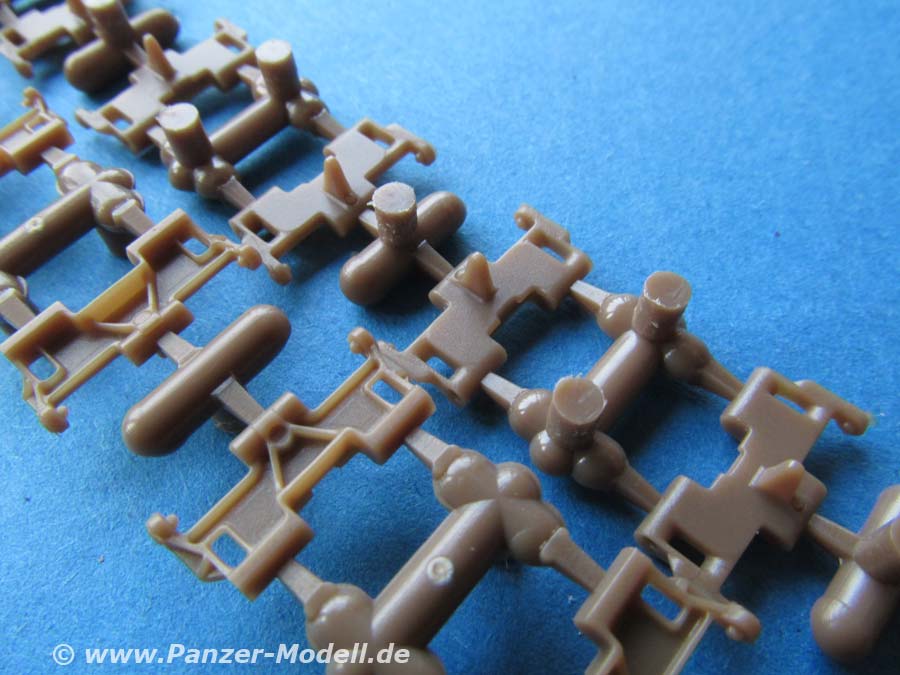Die Ketten sind als Einzelgliedketten ausgeführt mit sehr guten Details. Der Clou ist dass Bronco hier sowohl den frühen als auch den späten Kettentyp beigelegt hat. Damit hat man ein vollkommen funktionierendes Laufwerk mit beweglicher Federung und beweglicher Kette!