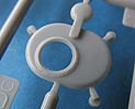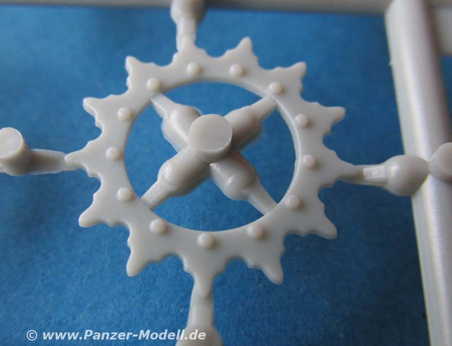 Alle Luken lassen sich auch offen darstellen und werden durch teilweise winzige PE Teile ergänzt. Absoluter Wahnsinn. Ähnliches gilt für die Schutzgitter der Scheinwerfer, die man wahlweise aus Plastik oder diversen PE Teilen bauen kann. Für die PE Teile liegen dankbarerweiseBiegeschablonen bei.