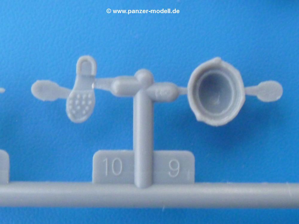 Schon seit langem Standard bei Bronco - alle Teile sind sauber gespritzt, ohne Sinkstellen, Versatz, Fischhäute oder Grat. Auswerferstellen sind vorhanden, aber minimal und an Stellen, die man nach dem Bau nicht mehr sieht. Bei den Figuren sind minimale Grate zu finden.