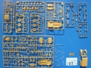 Wir finden im Karton 6 sandgelbe, 1 durchsichtiger und 2 hellgraue Spritzlinge vorhanden. Dazu kommt die bruchsicher verpackte Karosserie, 1 Ätzteil- und ein Abziehbilderbogen (Decals) und eine 16-seitige Bauanleitung im A4 Format.