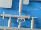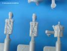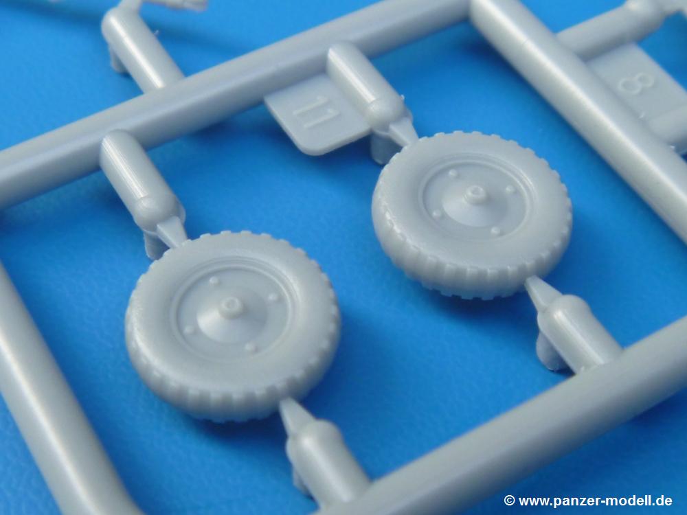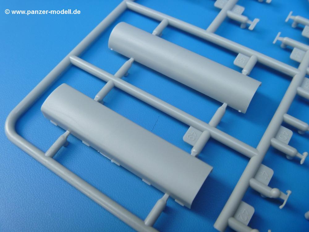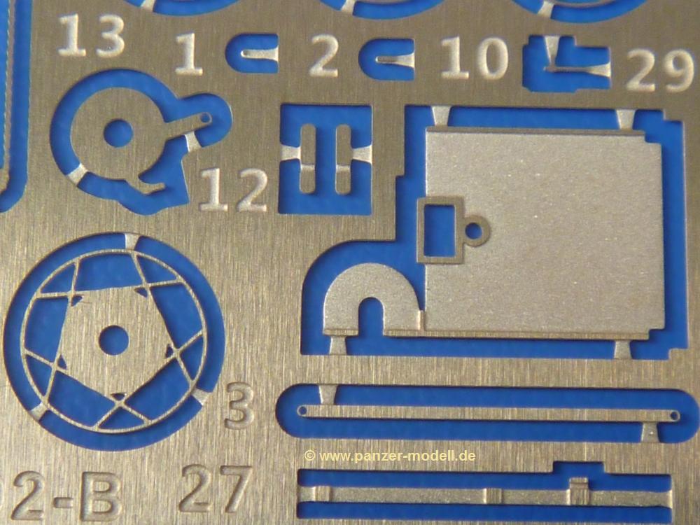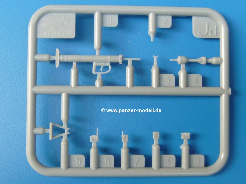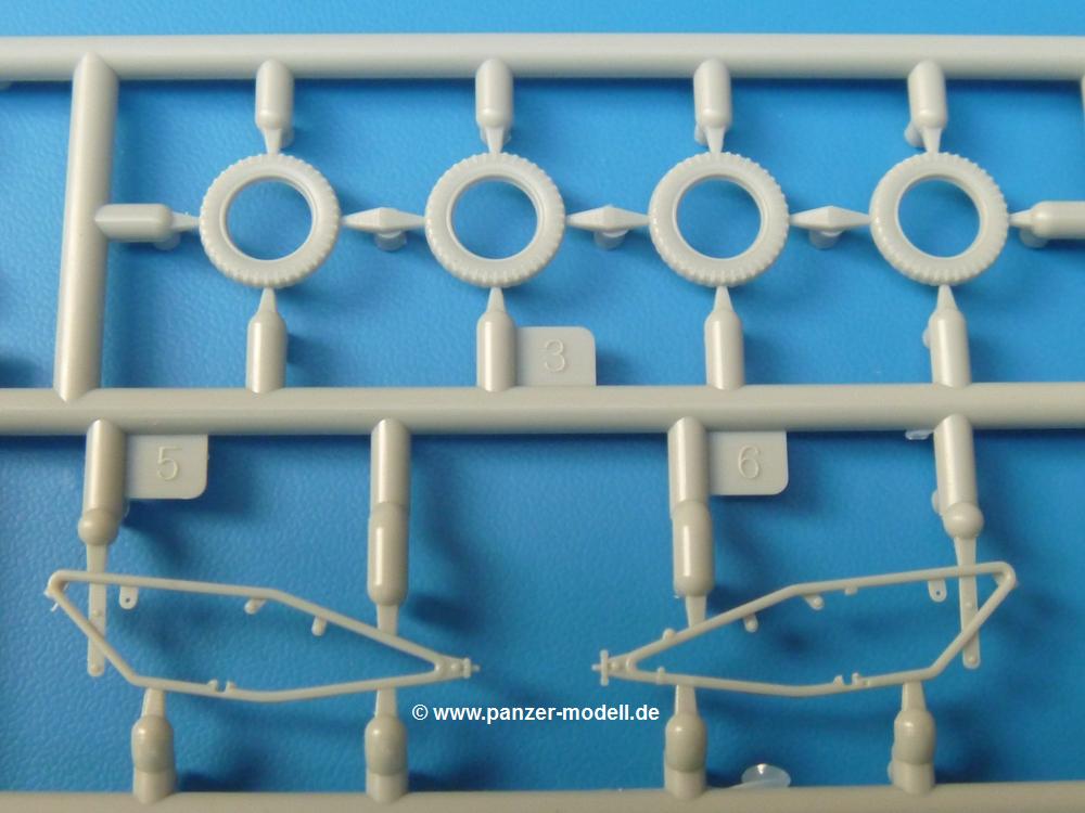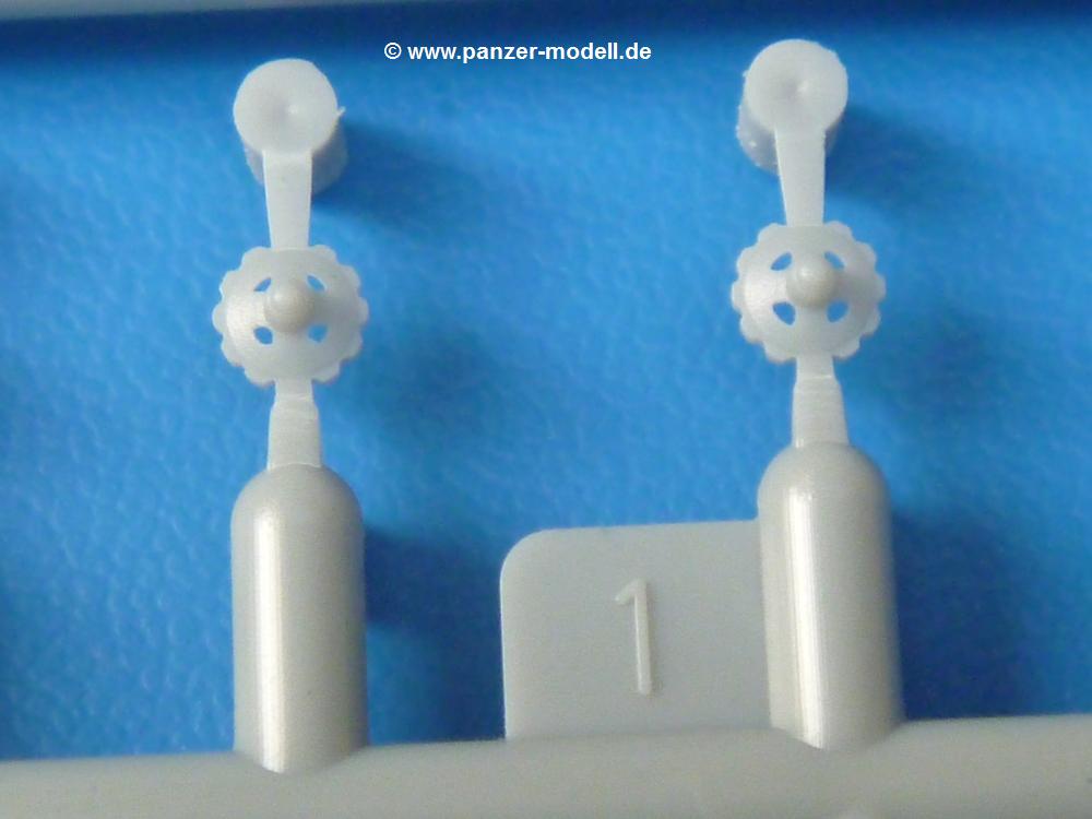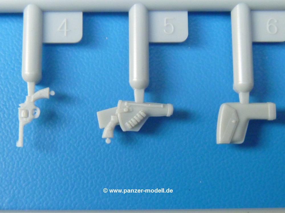 Die Teile sind wie üblich sauber gespritzt, ohne Versatz oder dicken Grat. Die Versäuberung kann sich fast nur auf die Angussstellen beschränken. Die vielen, sehr kleinen Teile sind Highlight und Herausforderung in einem. Die Gesichter der Soldaten sind gut gestaltet. Die Details kommen einem etwas "weich" vor, sind aber durchaus akzeptabel und für Spritzguss toll geworden.Soldat Handkarre schiebendHier handelt es sich um einen aufrecht gehenden Soldaten, ausgerüstet mit 2 Munitionstaschen, Rucksack, Schanzwerkzeugtasche mit Stiel und Feldflasche. Sein Barret ist bereits am Kopf angegossen.Die einfache Handkarre besteht aus 21 Teilen. Sie ist zwar faltbar, aber im Bausatz nur ausgeklappt darstellbar, damit der Soldat sie auch schieben kann. Die Stoffbespannung ist sehr schön dargestellt. Die Räder lassen sich drehbar montieren, wobei mir hier der Sinn nicht ganz verständlich ist. Die Beladung kann man mit dem vorhandenen Material individuell gestalten. Die Anleitung macht keine Vorgaben dazu, aber geht man nach dem Kartonbild, lädt man z.B. die PIAT Munitionsbehälter, die PIAT selbst, Helm (vom separaten Spritzling D) und den Karabiner des Soldaten auf.Die PIAT (Projector, Infantry, Anti-Tank) ist ein Kleinod. Man hat die Möglichkeit, diese Waffe mit eingeklappter Visiereinrichtung ohne Granate zu bauen oder eben einsatzbereit. Die Aufnahme für Granate besteht aus Ätzteilen. Es ist kein Trageriemen vorhanden - selbst herstellen. Zum Transport auf dem Karren wird man wohl eher die eingeklatte Visiereinrichtung ohne Granate nehmen.Soldat, Welbike (Minimotorrad) aus dem Abwurfbehälter hebendDas winzige Motorrad allein besteht aus 48 (!) Teilen und wird zusammengeklappt gebaut. Hier kommen Teile im Zehntelmillimeterbereich zum Einsatz. Viele Kleinteile sind nur als PE-Teile vorhanden (Bremshebel, Kette, Felgen etc). Die Bauanleitung gibt sogar an, wie dieser Winzling zu verkabeln ist, bzw. Verlauf des Gas- und Bremszuges. Allerdings muss man die Kabel und Züge selbst herstellen. Je nach Version muss man noch 2 bis 7 Decals an dem Winzling anbringen.Für den Abwurfbehälter des Welbikes liegen alle Teile bei, um ihn geschlossen, offen mit Welbike oder offen leer zu bauen. Für den Satz ist die offene Version gefragt.Der Soldat ist knieend dargestellt, wie er das Welbike aus dem Behälter hebt, bzw. auf dem linken Knie abstützt. Wegen dieser Haltung gibt es für den rechten Schuh die Sohle extra. Seine Ausrüstung besteht aus Helm mit Tarnnetz, 2 Munitionstaschen, Rucksack, Schanzwerkzeugtasche mit Stiel und Feldflasche.Soldat, auf Welbike (Minimotorrad) aufgesessenFür diese Welbike gilt das gleiche wie bereits oben angegeben, nur das man es fahrbereit baut. Den dazugehörigen Abwurfbehälter kann man auch weglassen oder anderweitig verwenden. Da es der gleiche Typ wie vorher ist, kann er geschlossen oder offen leer gebaut werden.Wie der Radfahrer im Set A hat auch dieser Fahrer 3 Beine, damit man ihn entweder fahrend mit beiden Füßen auf den Fussrasten oder anhaltend mit dem linken Fuß abgesetzt gestalten kann. Auch er ist mit Helm mit Tarnnetz, 2 Munitionstaschen, Rucksack, Schanzwerkzeugtasche mit Stiel und Feldflasche ausgerüstet. Die Anleitung sieht keine Anbringung einer Waffe vor, das Kartonbild zeigt ihn mit geschultertem Karabiner, aber ggfs. kann man ihm auch die MP umhängen.Die zusätzlich beiliegenden Rucksäcke sind sehr schön und hinten hohl. Für einen ist ein Tragegestell mit Tragschlaufen dabei. Am Spritzling der Rucksäcke sind auch nach Magazintaschen dabei. Alle diese Teile sind nicht besonders in der Anleitung erwähnt. Man kann sie also nach Belieben verwenden.Aus dem Minispritzling der 4 Fallschirmjägerhelme mit Tarnnetz und -material braucht man iegntlich nur den einen für den gehenden Soldaten. Die anderen 3 sind zur freien Verfügung, da die anderen Soldaten ihre Helme bereits am eigenen Spritzling haben.Ein Decalbogen hat Rangabzeichen vom Private bis zum Sergeant plus Fallschirmjägerschwingen anzubieten, aber die Anleitung schweigt sich über die Anbringung aus. Der zweite Bogen enthält die Decals für ein Welbike, Abwurfbehälter und PIAT Munitionsbehälter. Laut Anleitung soll der gleiche Bogen 2-mal vorhanden sein. Im Besprechungsmuster lag nur einer bei.Die farbige Bauanleitung auf dem Kartonrücken zeigt die gebauten Figuren mit den Nummern, wohin die Teile gehören. Hier sind die Bemalungshinweise mittels Farbnamen angegeben. Für die Welbikes, Abwurfbehälter, Handkarren, PIAT und die Waffen liegt eine kleine 12-seitige Anleitung im A5-Format im Karton. Die Anleitung enthält auch die komplette Spritzlingaufteilung und die Farbangaben bei Verwendung von Mr. Hobby, Hobby Color, Humbrol und Tamiya Farben in einer Tabelle. Wer einen Blick in die Anleitung werfen möchte, kann Sie sich hier unter "Instruction Sheets" anschauen und/oder herunterladen.Wie schon Set A ein schöner Figurensatz mit viel Zubehör - prima in Dioramen zu verwenden. In Deutschland muss man ca. 27-28 EUR auf den Ladentisch legen. |