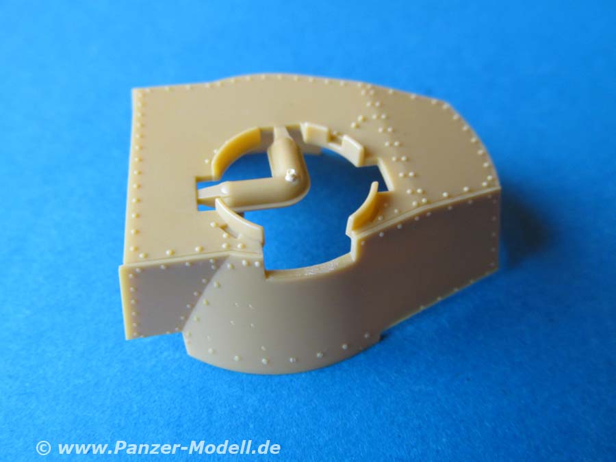 Interessant ist auch, dass die Großteile wie Turm und Wanne auch auf den Innenseiten mit Nietenreihen detailliert sind, teilweise sogar mit weiteren PE Teilen.