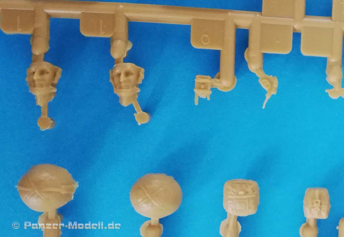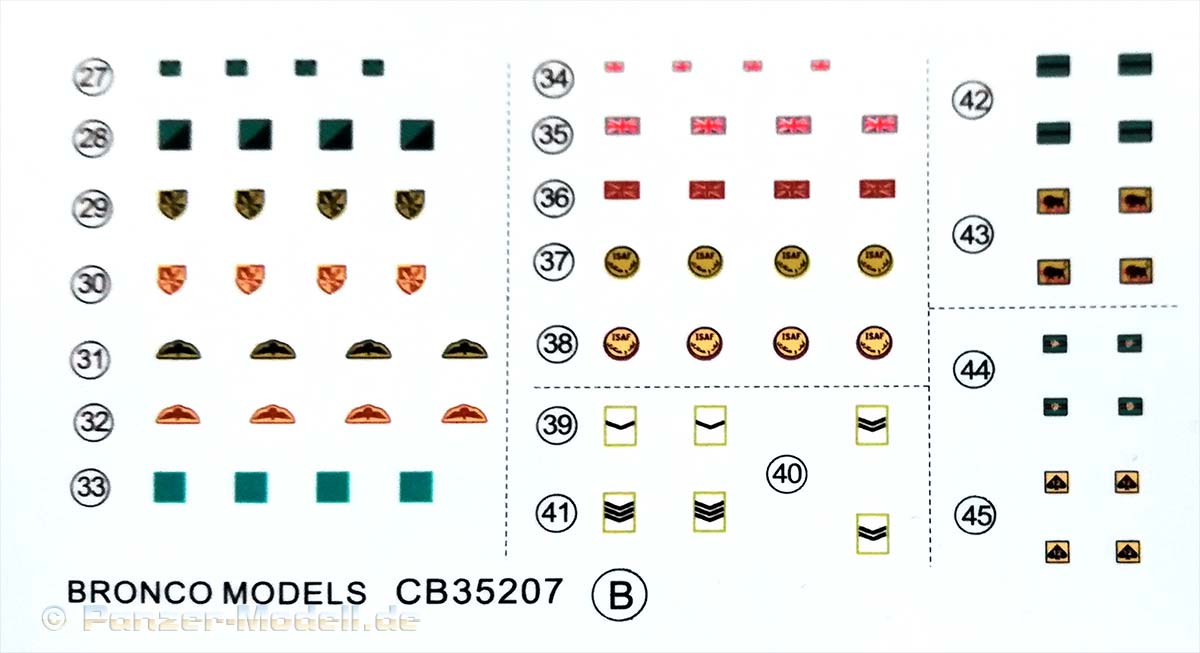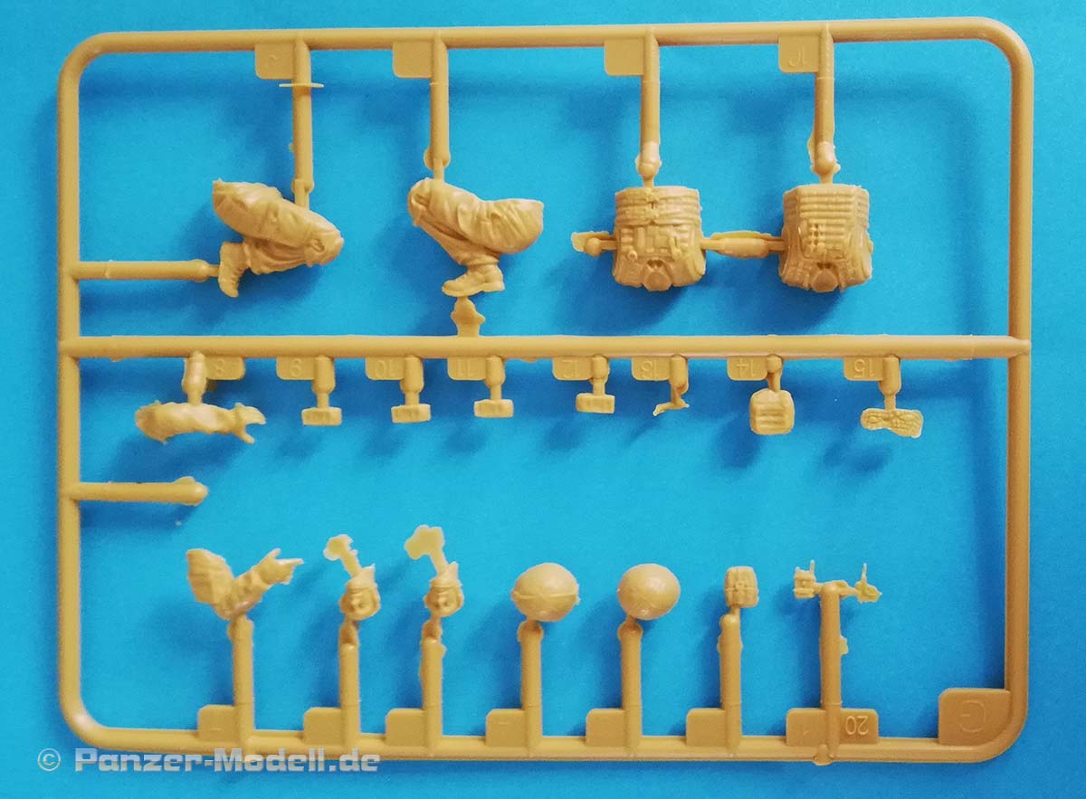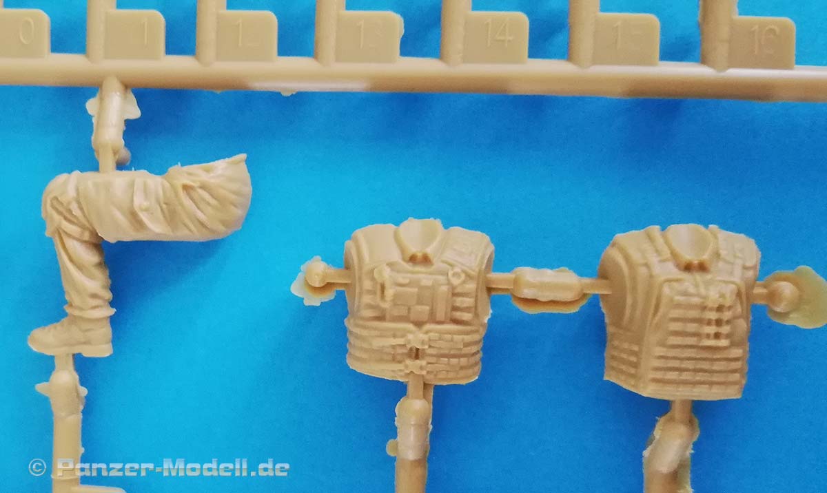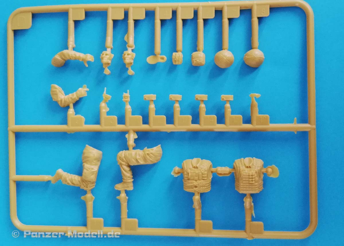 Es finden sich kein Grat und nur wenige Fischhäute, welche sich leicht mit einem Skalpell entfernen lassen. Die vorhandenen Auswerfermarken sind alle an später nicht mehr sichtbaren Stellen, meistens an den Rückseiten der Bauteile, versteckt. Trotz der relativ wenigen Bauteile zeigt sich der Bausatz ordentlich detailliert. Im Gegensatz zu meinen bisherigen Erfahrungen mit Bronco sind auch nicht viele unendlich kleine Teile zu verbauen, was einen positiven Eindruck hinterlässt. Trotzdem sind doch einige schöne Fotoätzteile vorhanden diese sind zwingend zu verwenden und es gibt keine Alternativteile aus Plastik. Allerdings sind alle Ätzteile augenscheinlich leicht zu verarbeiten und daher wohl durchaus für den Anfänger geeignet. Was leider nicht vorhanden ist, aber nachgerüstet werden sollte, sind die Brems- und Gasletungen der Maschine, dies sollte aber mit etwas Draht durchaus machbar sein. Im Bausatz ist keine Motornachbildung enthalten, dieser würde allerdings eh hinter den Verkleidungen verschwinden und bei der geringen Größe des ATV auch wieder sehr filigran sein. Der Anhänger ist ein gutes Beispiel, wie mit relativ wenigen Bauteilen eine schöne Wirkung erzielt werden kann. Hier gibt es beim Zusammenbau einige Alternativen. So können entweder die beiden Behelfsbrücken zusammen mit einer ebenfalls vorhandenen hervorragenden Trage angebaut werden - oder nur die Trage oder nur die Brücke. Bei Bedarf kann man den Anhänger natürlich auch selbständig mit einer Beladung ausstatten. Der Anhänger wird ebenfalls mit augenscheinlich leicht zu verarbeitenden Ätzteilen aufgewertet. Die beiliegenden Vinylreifen zeigen ein recht grobes Profil und sehr filigrane Beschriftungen auf den Reifenflanken allerdings wirken diese doch sehr kleinen Reifen manchmal etwas „verschwommen“ Die sehr gute Bauanleitung führt in fünfundzwanzig klaren und sehr übersichtlichen Schritten zum fertigen Modell. Die Decal Optionen erlauben die Darstellung eines Fahrzeuges in Desert Tan, mit allen nötigen Warnhinweisen und Placards, wie sie an modernen Militärfahrzeugen zu finden sind. Ein weiteres Highlight sind für mich die vier Figuren. Diese sind so ausgelegt, dass sie durch die Auswahl von verschiedenen Köpfen, Helmen und Oberkörpern zu zwei verschiedenen Einsatzperioden passen. Während der ersten Jahre des Einsatzes des Quads kam es bei der British Army zu einer Modernisierung der persönlichen Ausrüstung der Soldaten. So wurden zum Beispiel neue Helme und Schutzwesten eingeführt ebenso wechselte die Uniform von Desert DPM zu Multi-Terrain Pattern (MTP). All dies wird bei den Figuren durch Austauschteile berücksichtigt Sehr vorbildlich und äußerst erfreulich. Als Waffen sind vorhanden: Zwei Standard L85A2 (SA80) Sturmgewehre, ein L85A2 mit Granatwerfer und L192A2 DMR (Hier als Sharpshooter Rifle bezeichnet) letzteres würde nicht zum Einsatzzeitpunkt der Figurengruppe mit der „alten“ Ausrüstung passen, da dieses sich erst ab Ende 2010 im Einsatz befand. Die Figuren können laut Anleitung entweder als Soldaten im DPM des 3rd Battailon, The Rifles, der 11 light Brigade bei der Operation Herrick XI in Afghanistan zwischen Oktober 2009 und April 2010 dargestellt werden, oder alternativ als Truppen im MTP des 3rd Battalion, The Parachute Regiment, 16th Air Assault Brigade während der Operation Herrick XII zwischen November 2010 und April 2011. Für die Figuren ist ein eigener Decalbogen mit Einheitenwappen, Dienstgradabzeichen und Tätigkeitsabzeichen vorhanden hervorragend! Die Farbangaben beziehen sich auf die Produkte von Hobby Color, Mr.Hobby, Humbrol und Tamiya - Allerdings können natürlich auch hier wieder alle passenden Farben der gängigen Hersteller genutzt werden. Mein Fazit: Eine absolute Kaufempfehlung nicht für den blutigen Anfänger, aber Modellbauer mit etwas Erfahrung und Profis werden ihre Freude haben.