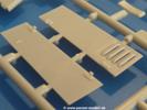 Dem sWS mit Panzerwerfer 42 folgt nun die ungepanzerte Transportversion.Es sind im Karton 10 sandgelbe, 2 durchsichtige und 2 braune Spritzlinge vorhanden. Dazu kommt das Untergestell, 1 kleiner Ätzteil- und ein Abziehbilderbogen (Decals) und eine 14-seitige Bauanleitung im A4 Format.Die Spritzlinge sind wie folgt aufgeteilt: