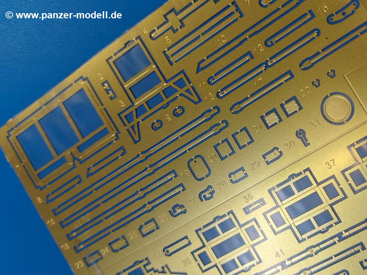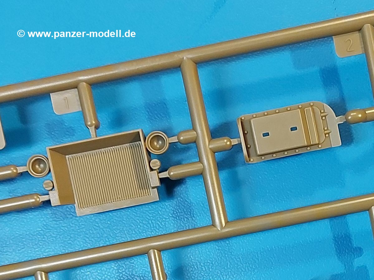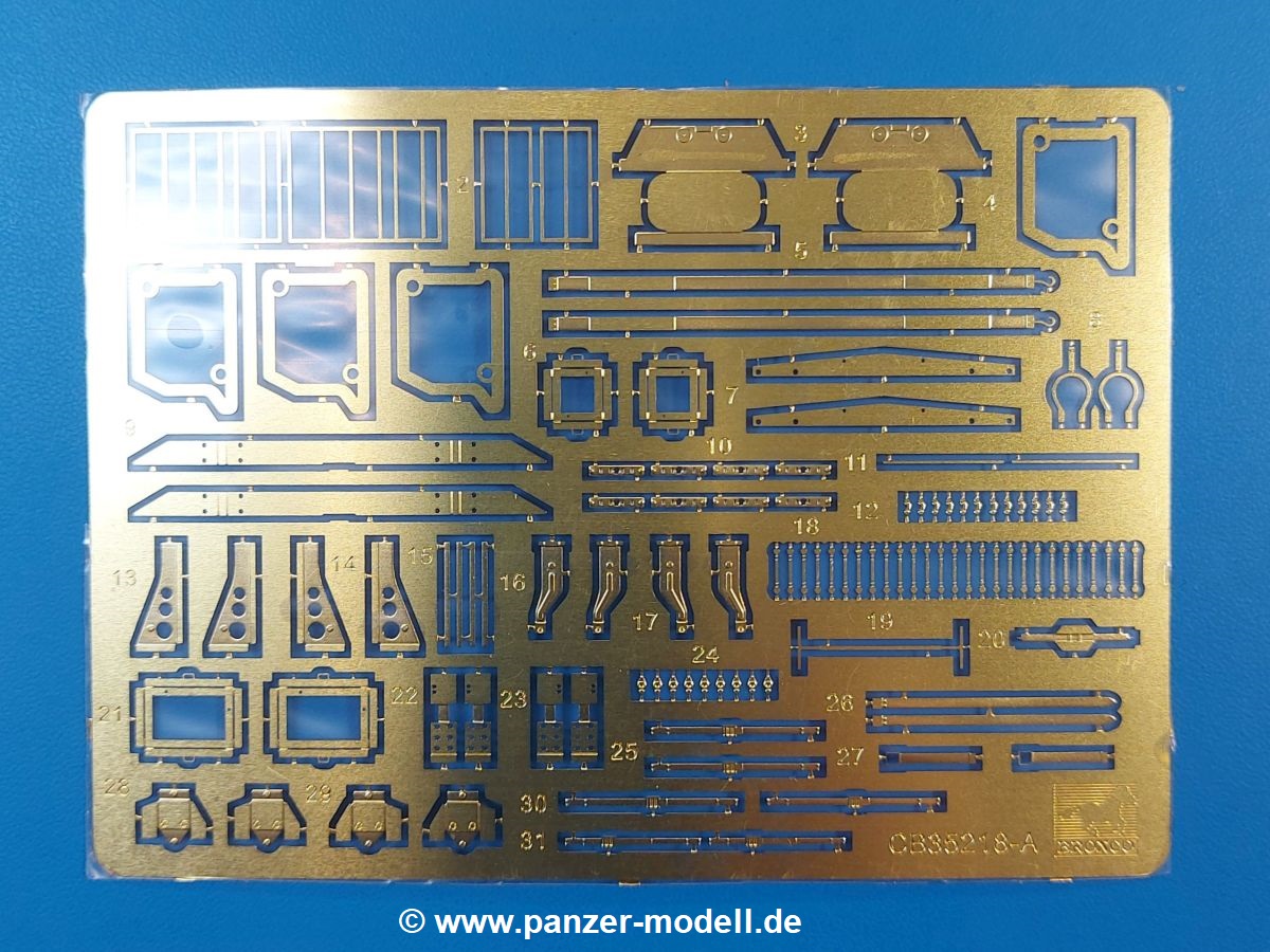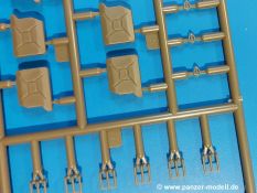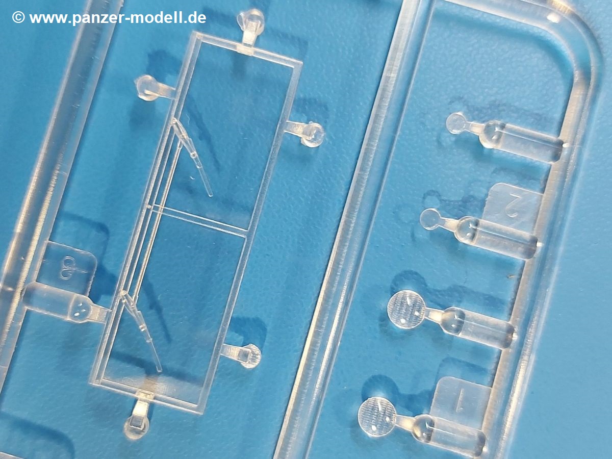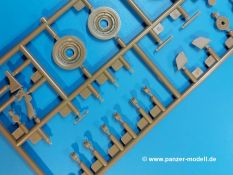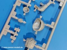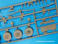 Das Original: Über "den Jeep" (formal: Truck, 1/4 ton, 4x4) braucht man eigentliche keine Worte mehr zu verlieren. Das in den 1940-ern meist bei Willys und Ford gebaute Allzweckfahrzeug war bei seinen Nutzern äußerst beliebt und fand Einsatz in den unterschiedlichsten Einheiten als Aufklärungsfahrzeug, Zugmaschine für leichte Anhänger und Geschütze usw. Allein im 2. Weltkrieg wurden fast 650.000 Jeeps gebaut und eingesetzt. Die U.S.A. lieferten ihn auch an alliierte Staaten wie Frankreich, Russland und Großbritannien. Auch heute existieren noch viele einsatzbereite Exemplare. Die Bausätze: Wer britische Jeeps bauen möchte, ist bei Bronco ganz gut aufgehoben. Der neueste Bausatz enthält gleich 2 davon einen der Aufklärer und einen der Fernmelder. So kommt es, dass einige Spritzlinge gleich doppelt vorhanden sind. Im großzügig dimensionierten Karton mit den Maßen 445 x 300 x 70 Millimeter befinden sich neben der 16-seitigen Bauanleitung, 2 PE-Platinen, Bindfaden und 2 Abziehbilderbogen (Decals) 16 olivgrüne Spritzlinge plus 2 Karosserien und 1 durchsichtiger Spritzling. Die 5 Spritzlinge der Figuren sind hellgrau, ebenso der Spritzling für den Korb und der mit den Gurttaschen. Da sich auch Teile anderer Versionen an den Spritzlingen befinden, bleibt einiges übrig. Diese Teile sind in der Übersicht ausgegraut. Alle Teile sind sauber gespritzt, ohne Sinkstellen, Versatz oder Fischhäute. Jedoch ist hier und da feiner Grat zu finden, der aber leicht zu entfernen ist und der Qualität insgesamt keinen Abbruch tut. Einige Auswerfermarken sind vorhanden, auffällig an der Unterseite der Karosserien und der Innenseite der Motorhauben. Bronco legt Wert auf kleinste Details, deshalb gibt so einige feine, aber auch kleine Teile bis hin zu separat anzubringenden Schraubenköpfen. Es empfiehlt sich, die Bauanleitung sehr gründlich zu studieren, damit man die beiden Fahrzeuge nicht durcheinanderwirft. Na, schauen wir mal, was uns geboten wird. Da ist zum Beispiel ein ziemlich kompletter Motor mit Zündspule, Vergaser, Abgaskrümmer, Auspuffrohr, Luftfilter, Keilriemen- und -scheiben, Lüfterrad, Kupplungsgehäuse, Schaltgetriebe, ein Verteilergetriebe und Kardanwellen zu Vorder- und Hinterachse. Im Motorraum hat man noch Kühler mit Scheinwerfern, Batterie, Hupe usw. Die Achsen werden an Blattfederpaketen befestigt, die jeweils mit Stoßdämpfern versehen werden. Die Vorderräder können geradeaus oder mit Lenkeinschlag gebaut werden. Man muss sich nur für die entsprechenden Gestänge entscheiden. Die Plastikräder sind mit Hersteller und Reifenangaben versehen und können drehbar gebaut werden. Die offene Karosserie bietet genug Gelegenheiten mit Details zu glänzen und Bronco nutzt das schamlos aus. Pedalerie, Schalthebel, Kraftstofftank, Sitze, Lenkrad und ein sehr schönes Armaturenbrett, für dessen Instrumente und Hinweisschilder Decals beiliegen, die man besser vor dem Einbau anbringt. Man kann wählen, ob man das gefaltete Gestänge der Plane anbringt oder nicht. Alle Versionen bekommen ein sehr feines Funkgerät Nr. 22 mit PE-Schutzgitter. Da das Funkgerät sehr gut einzusehen ist, kann man sich bemalungstechnisch entsprechend austoben. Kommen wir zu den Unterschieden. Das mache ich besser in einer Aufzählung: