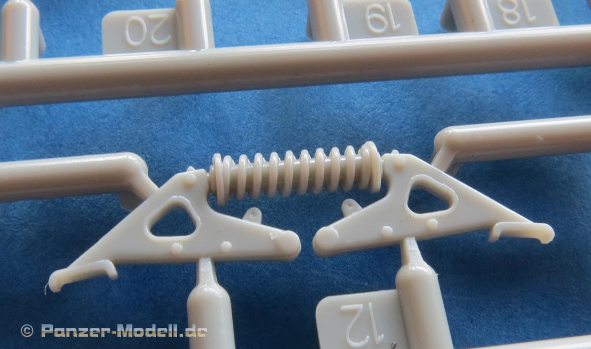 An der Heckachse werden die markanten horizontalen Spiralfedern für die Federung angebaut, die einen guten eindruck machen, aber nicht beweglich sind.